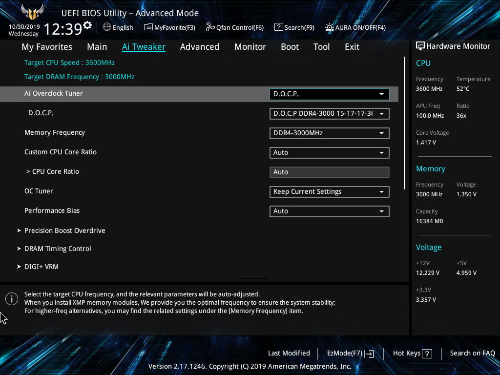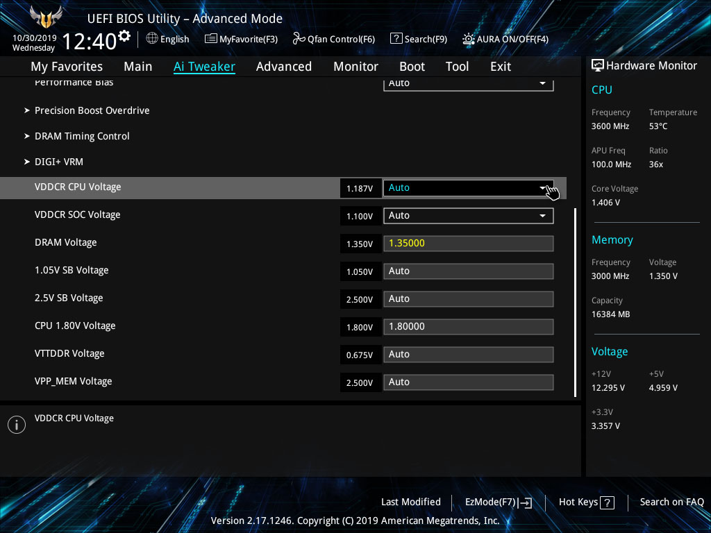 Добрый день! Подскажите пожалуйста, какие настройки биоса покрутить для: 2600х с боксовым куллером, Asus B450 Tuf Gaming plus, HyperX 3000 16gb. Напряжение у процессора скачет, температура 55 градусов в простое. Включил только D.O.C.P для памяти. Напряжение и температура утихают только если выключить Core Perfomance Boost, но я так понимаю это выключает автобуст до 4.2. Непойму как напряжение успокоить на проце, там можно только каким то offset +-, но что не ставь - всё так же скачет 1,396-1.427 V. Если возможность на этой материнке что то сделать или это нормально и для 2600х кладут слабенький куллер? Скрины биоса прилагаю.