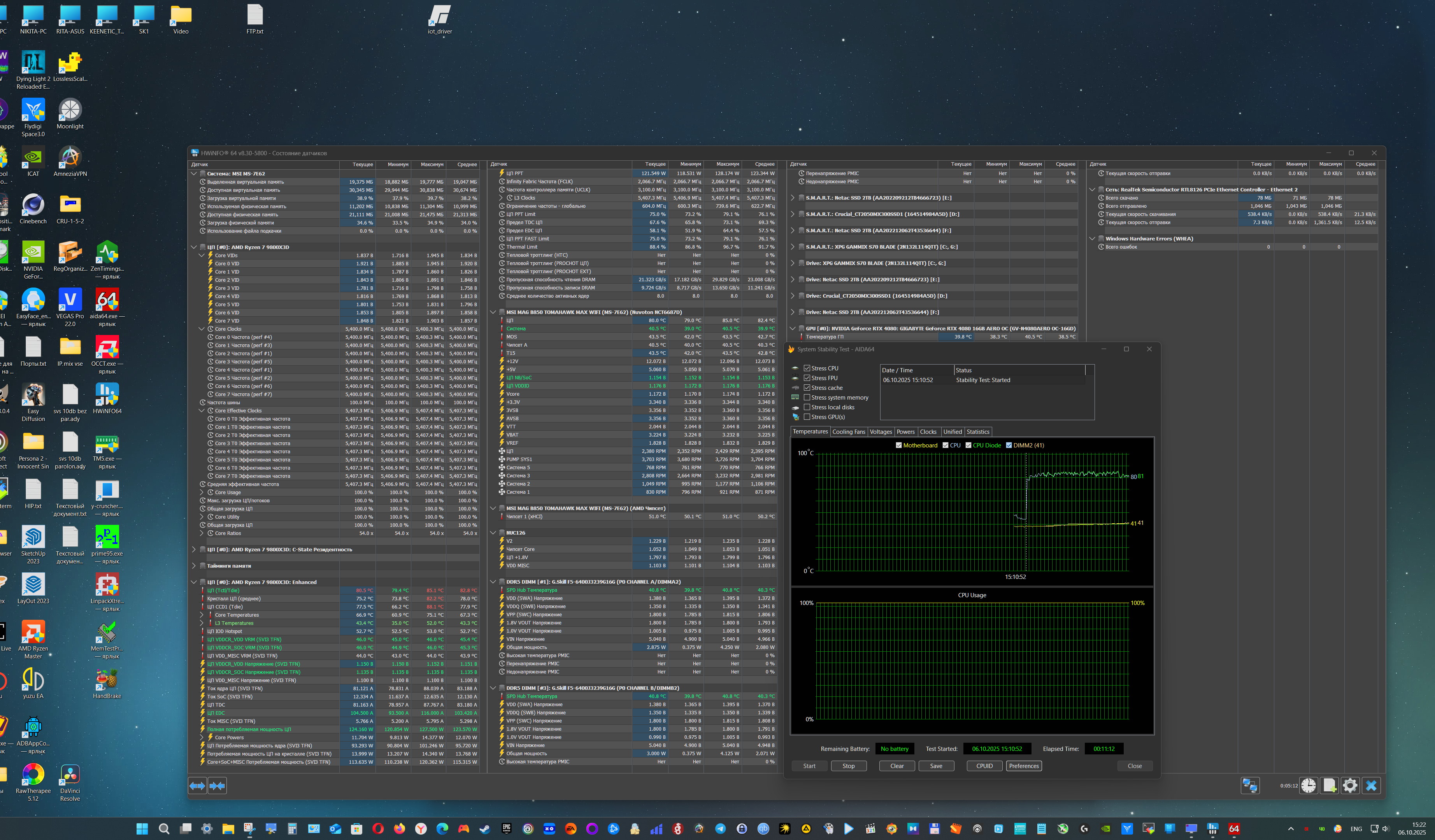 На скриншотах там видны мои тестовые программы на рабочем столе. Гонял по несколько часов на ночь и occt и линпак и y-cruncher, prime95, TM5 с экстрим профилями, так же игры бегал по несколько часов, зависаний нет, что еще нужно крутить? Ну и по фиксу видно, что как бы 5450 при 1.15v крутит аиду, а PBO для CO -30 и 5425мгц выставляет 1.17-1.19v Скрин с FCLK 2200 1.13v при 6200мгц.