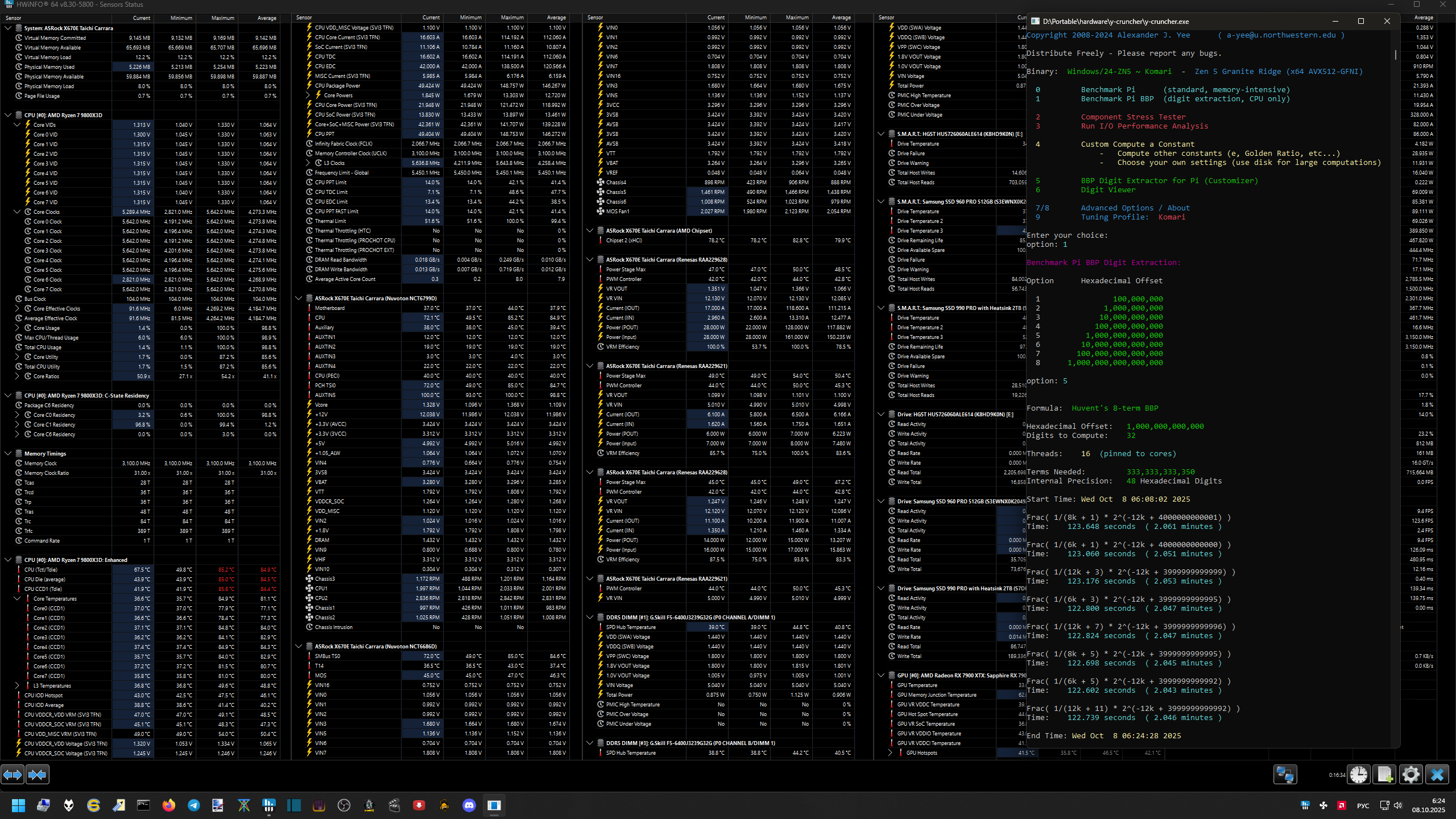 Да, это жоска Вообще, там гонялся Corecycler. И да, гонялся не раз, и не только с использованием Y-Cruncher, но и с использованием Prime95. И с разными инструкциями: AVX512, AVX2, AVX, SSE - и все это крутилось по 12 часов, минимум. А потом еще гонялся Prime95 пресет Blend, часов 12. Потом Y-cruncher на все ядра - BKT, BBP, SFTv4, N63, VT3 - 4 часа, минимум. Ну, короче, нормально так протестировано. На разных частотах, с разными инструкциями, большим набором тестирующего ПО. Поэтому теперь, компиляция шейдеров в играх совершенно не страшна