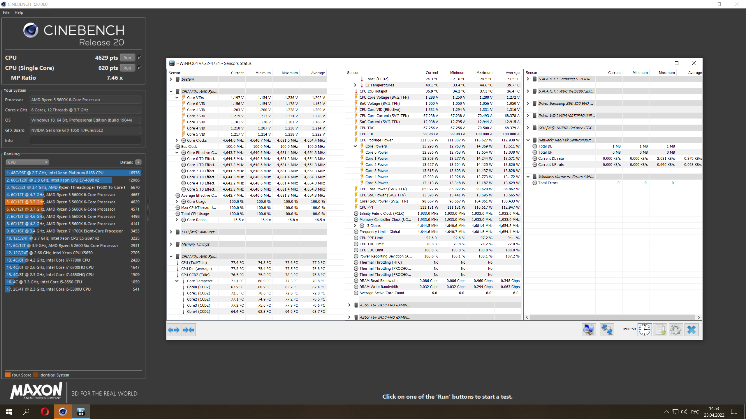Из этого делаю выводы, что, во-первых, при PBO у меня реальные частоты соответствуют мониторингу (те же 4650) при многопоточном тесте. Во вторых, при однопоточном тесте у меня частота, считая пропорцию, (4650*620)/602 = 4790Мгц. Куда убежали оставшиеся 60 до целевого значения 4850, я не знаю, но да и хрен бы с ними. В третьих, фикс 4650 на напряжении 1,3 (с просадкой 1,288, температуры даже в CB R20 больше, чем с PBO) ни разу не стабилен в моем случае, LinX отправляет комп в нокаут сразу же при запуске. Снижать пришлось бы до 4,5, наверное. В моем случае, PBO явно предпочтительнее. Прошу сторонников фикса не кидаться помидорами, никому ничего не навязываю.
