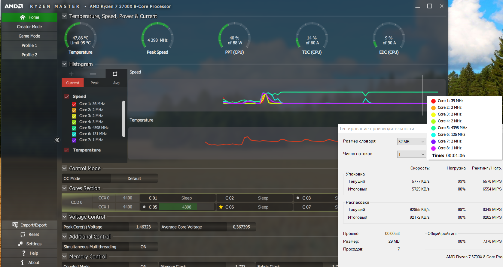 Но зато в играх теперь самые убогие ядра полностью игнорируются системой, распределяя мощность на другие - что в итоге дало стабильный буст на 4300, против прежнего лихорадочного 3600-4200 по всем ядрам.