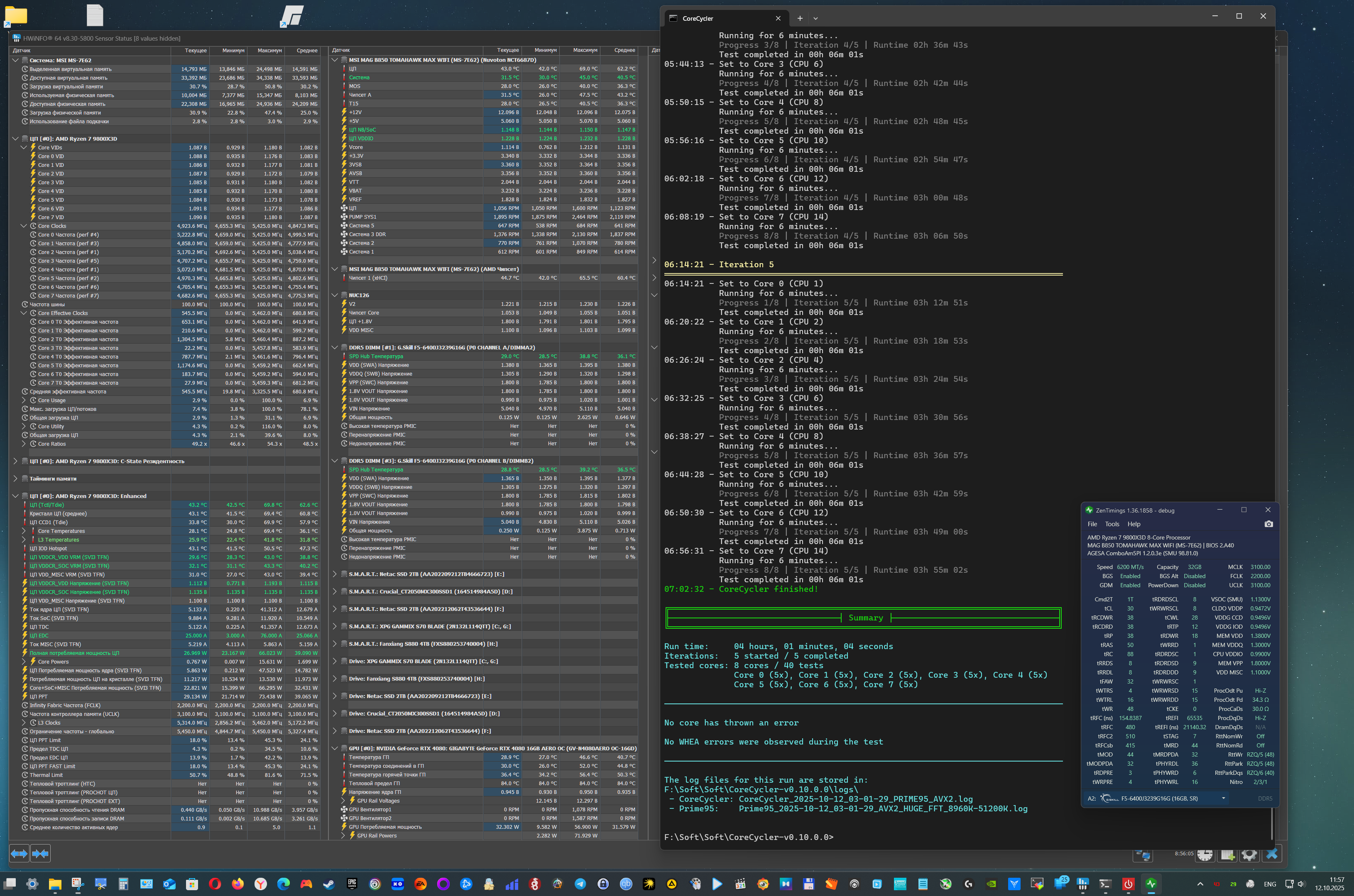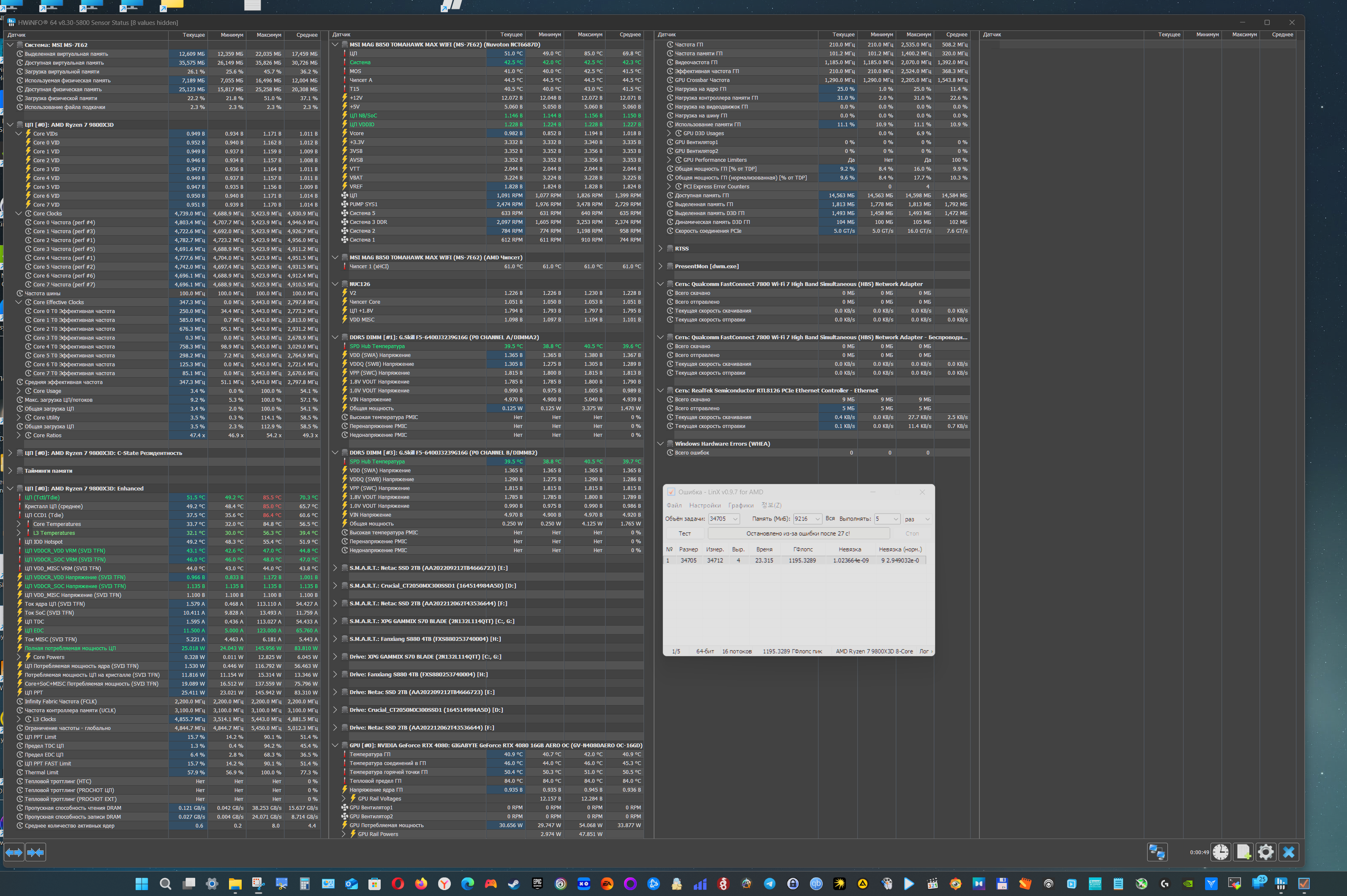 Но вот я нарыл какой-то LinX v0.9.7 (AMD) и он работает только на CO -10, на котором крутил час и все норм, а уже при CO -11 не проходит не одного прохода с любым значением памяти. И выдает ошибку всегда в одном месте, например при памяти 9216Миб всегда на 27 секунде, при 13312Миб на 47 секунде и пофигу какое CO, только с CO -10 начинает работать стабильно. То есть при -10 крутит без проблем, а при -11 не проходит не единого круга и виснет всегда на одном времени, которое увеличивается в зависимости от количества памяти.