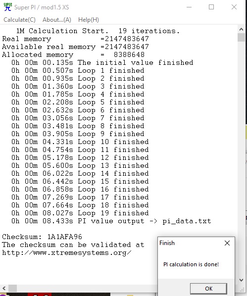 Что считать разучился ? Полторы секунды это разница практически в 20%, что весьма много . Кстати, у меня в super pi результат выше чем у вас на древнем 2600к : https://photos.app.goo.gl/pqroNZa4mNgKptSU7