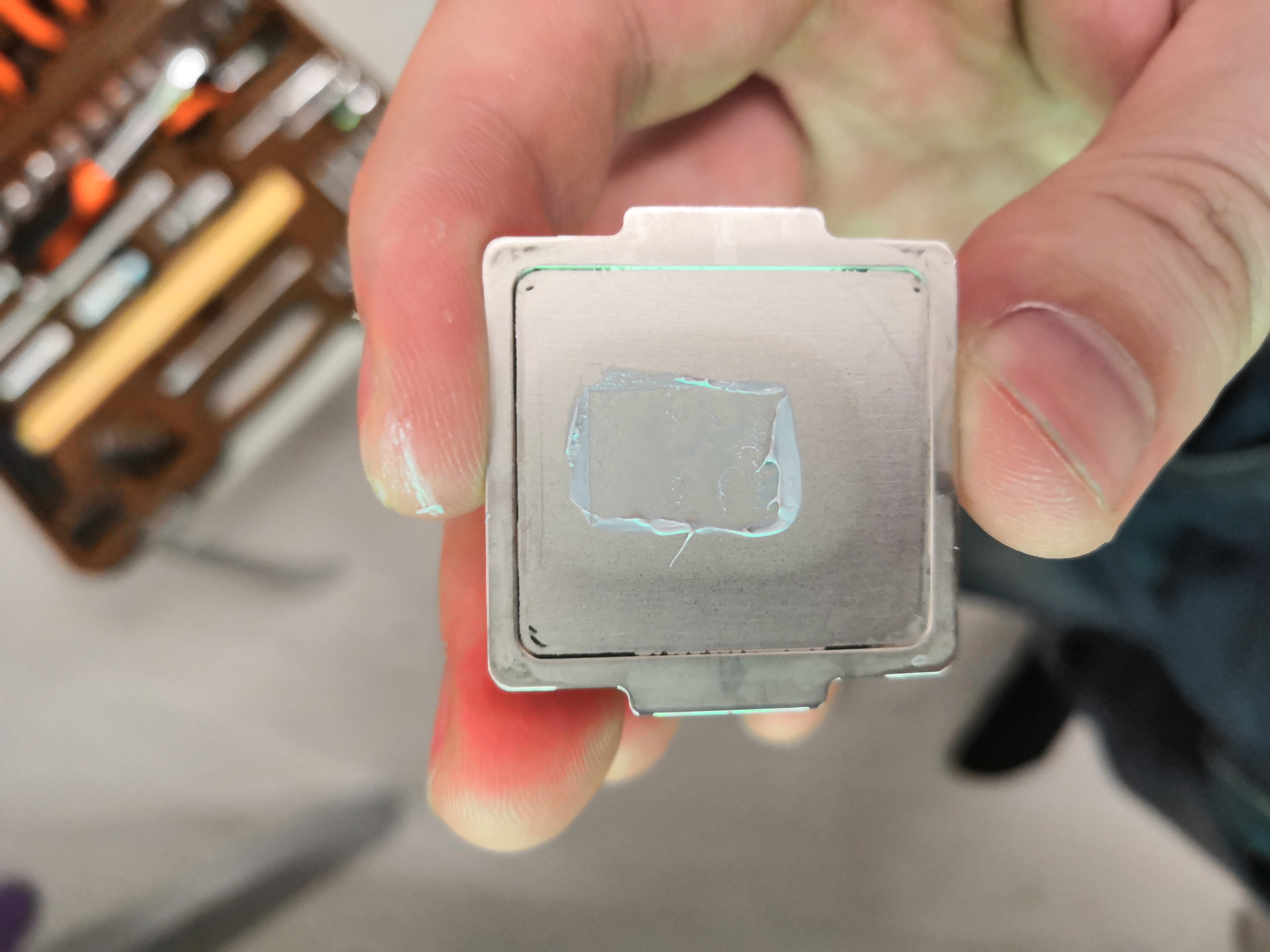 Может некорректно написал, имелось ввиду подрезал герметик на 1мм с угла крышки (т.е. не прошел даже толщину крышки. Скальпель тонкий и не отгибал крышку/текстолит разумеется), т.к. пластик гнулся и выскакивал. Вопросов нет после вымачивания крышку будет легче тисками скинуть, но их под рукой нет и принципиально обкатывался метод подрезки пластиком. Руками 99,99% че-нибудь поломаешь, т.к. трудно контролировать усилие и будешь давить рывками. Да и герметик интеловский так просто не сдавался даже после снятия крышки. В общем как и писал в первый раз пару месяцев назад метод рабочий и очень бюджетный: 50 руб. ацетон + любая пвх бутылка + 3 руб. шкурка для заточки пластика. Хз что там можно сделать не так.