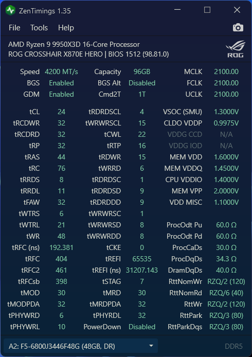 Смотрите использование ПСП на чтение и запись, оно одинаково практически на 4200 и 6400. Так что дело именно в задержке, а не в частоте. Почему в псевдосинхроне 2:3 работает без GDM, а в синхроне 1:1 работать без GDM не хочет, даже для скриншота? Вот не могу понять эту херню. Чего ему надо?