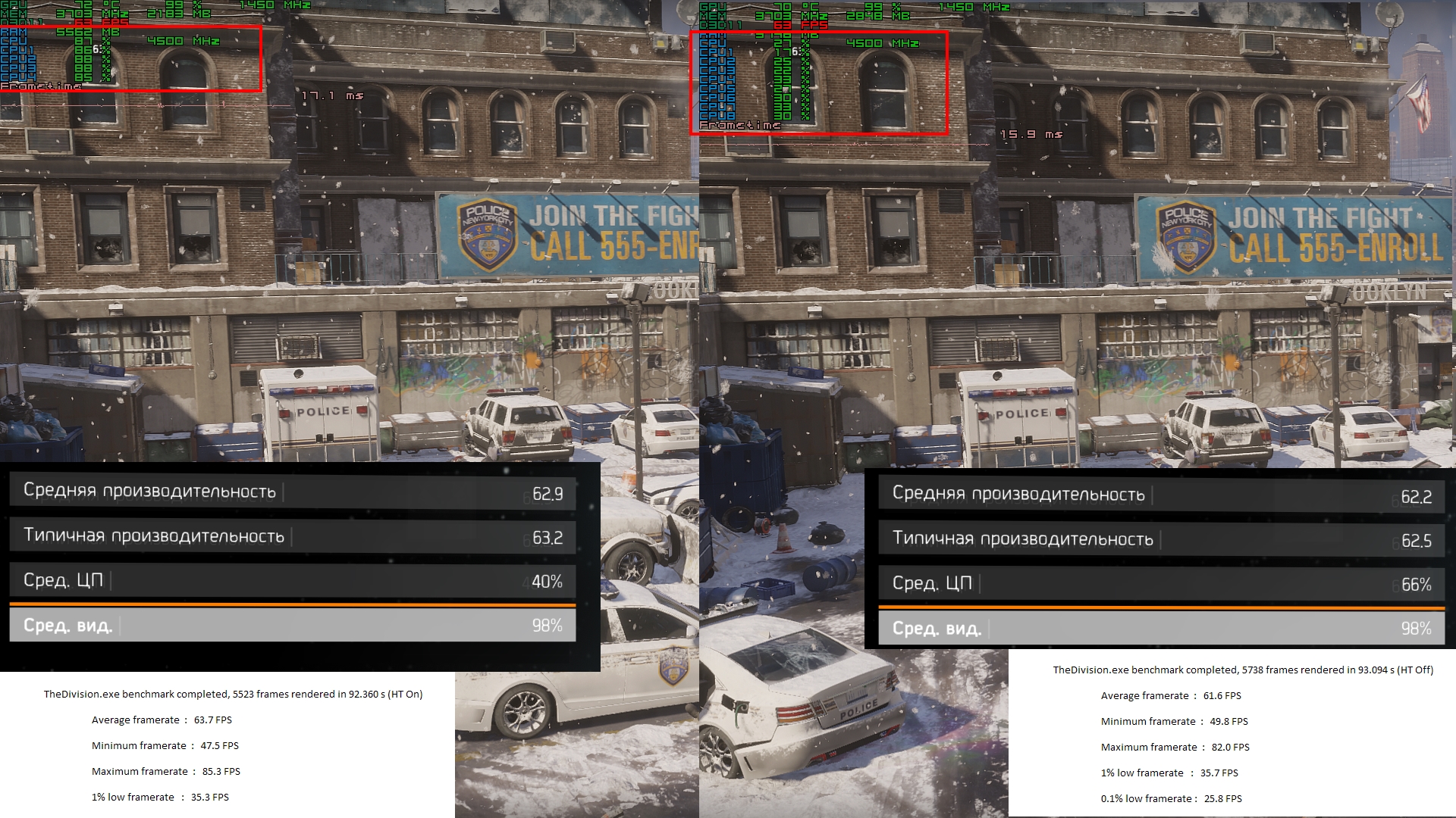 Я вчера тестил Псов мчал по одной дороге 35 сек + с HT , а потом без. Через Afterburner потом смотрел статистику фпс и там разница минимальная. Но как я уже писал c HT есть где развернуться