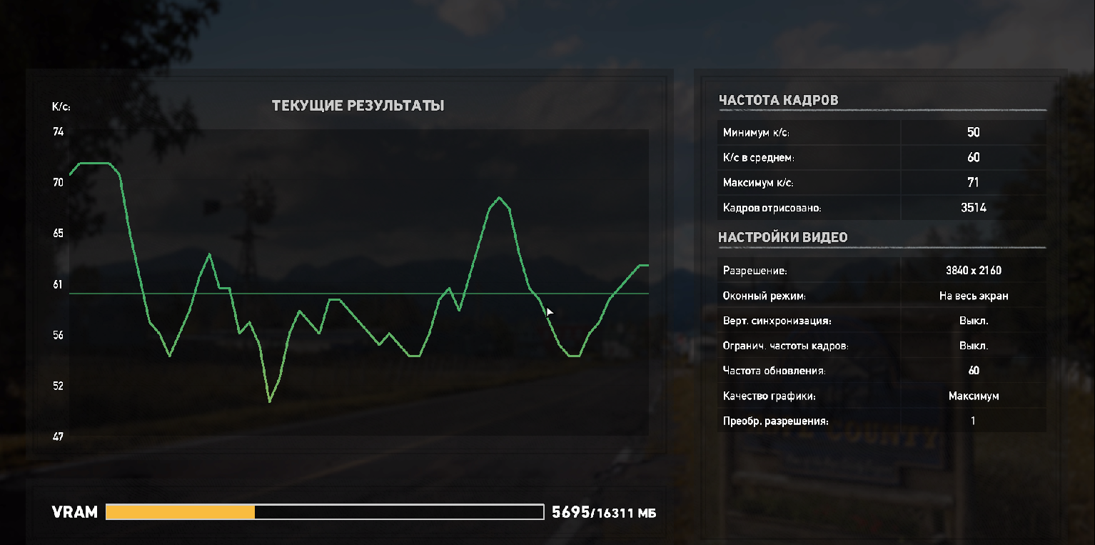 Если не затруднит можешь под спойлером выложить скрин результата бенча Far Cry 5 с HD текстурами в 4К? Настройки ультра, видимость 120, в драйвере фильтрация High. Интересно сравнить 2700Х+5700XT vs 2700X+Radeon VII.