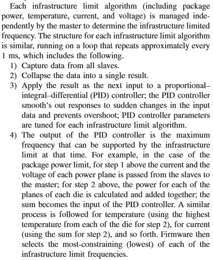 Добавлено спустя 1 час 14 минут 3 секунды: То что HWInfo показывает как "Global frequency limit"- есть текущая наименьшая из семи частот (для Vermeer) соответствующих инфраструктурных лимитов (PPT, TDC, THM, Voltage, HTC, PROCHOT, CCA) Исходя из нее, и лимита FIT (или из таблиц VFT) определяется VID для запроса VOTF (vid-on-the-fly) у VRM. В этот конкретный момент, это значение VID и является макс. безопасным.