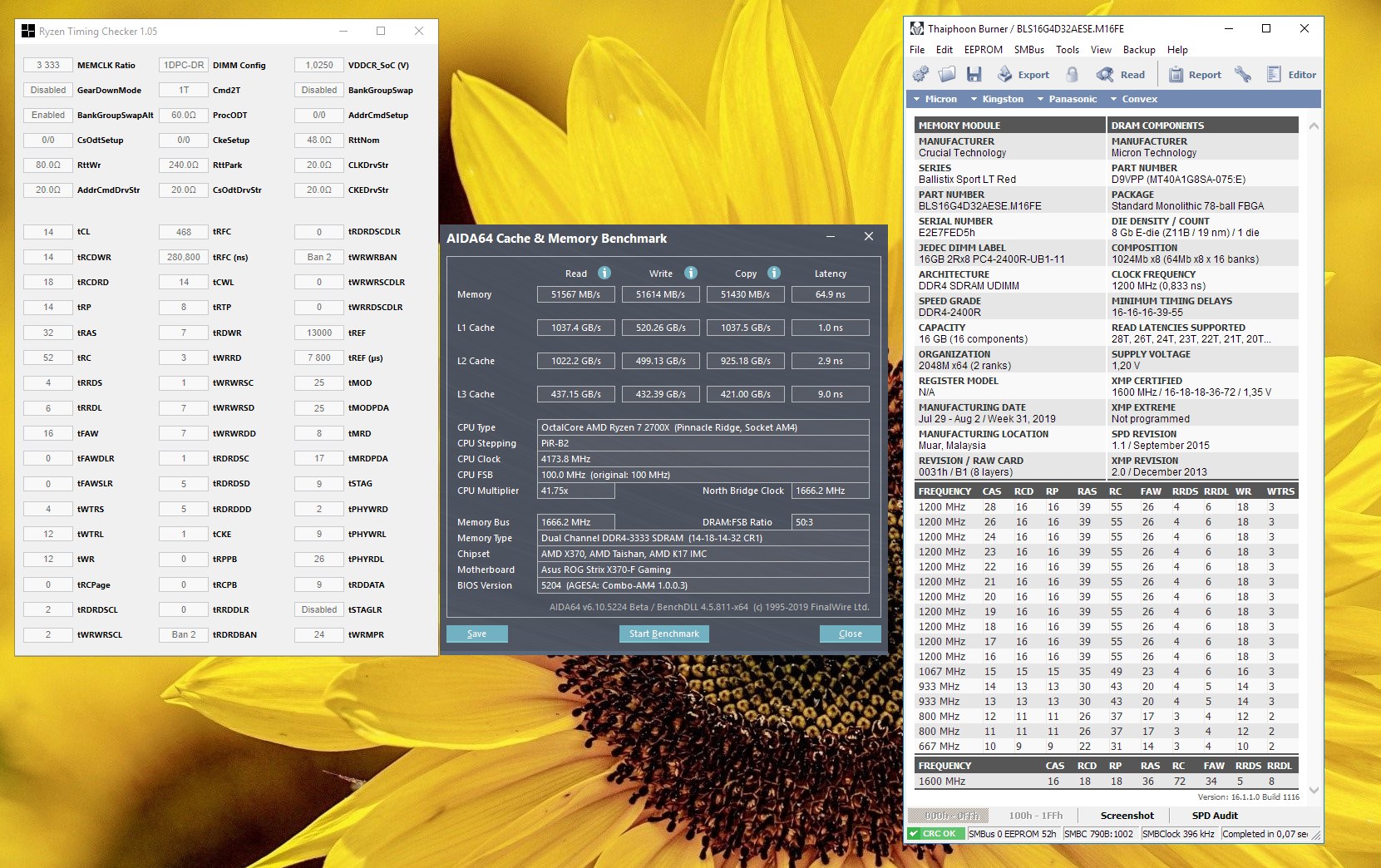Поделюсь и своими результатами напряжение у проца 1.35, у памяти 1.4, soc 1.025 при почти тех же настройках работает на 3400, тесты проходит, но если поиграть минут 20 и после этого запустить мемтест, находит ошибки, поставил обдув на память, результат не изменился... из-за этого остановился на 3333 и ужал тайминги по максимуму