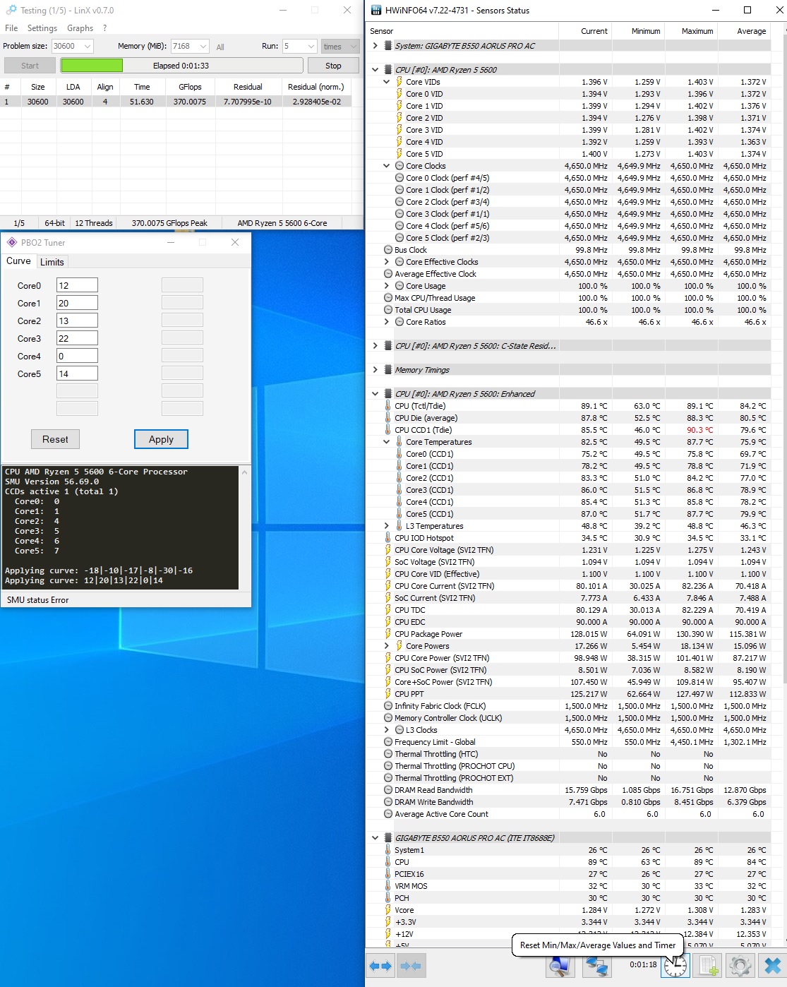 При этом методе игнорируется лимит EDC, лимит TDC настраивается исходя из возможностей VRM, какой ток в амперах материнская плата может максимально выдать не перегревая VRM, лимит PPT это максимальное потребление процессора, особенно актуально если система охлаждения очень инертная. 5900X/5950X упрутся в температурный лимит в 90°С на самом горячем CCD, 5600X/5800X в 95°С, эти значения можно уменьшить при помощи настройки Platform Thermal Throttle Limit. Последние 5°С до этого лимита дают приличные пенальти к бусту.