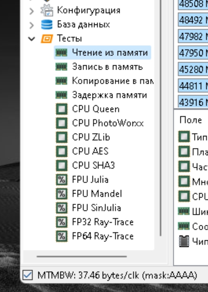 Никакой. Все эти тесты в Аиде - полнейшая шляпа. Только ПСП памяти можно немного оценить (относительно стока, ХМР-EXPO) в тестах Zlib, AES и Sha3. Хз, кто-там и что смотрит на Интел, но я смотрю на CBR15 Extreme, CBR23, CB2024 (1t и Мt), Blender, Corona, Topaz, 7-zip. З.ы. Вспомнил, народ ещё стабильность типа проверял: прошел по 5 раз Zlib, AES и Sha3 и Julia- значит все стабильно...