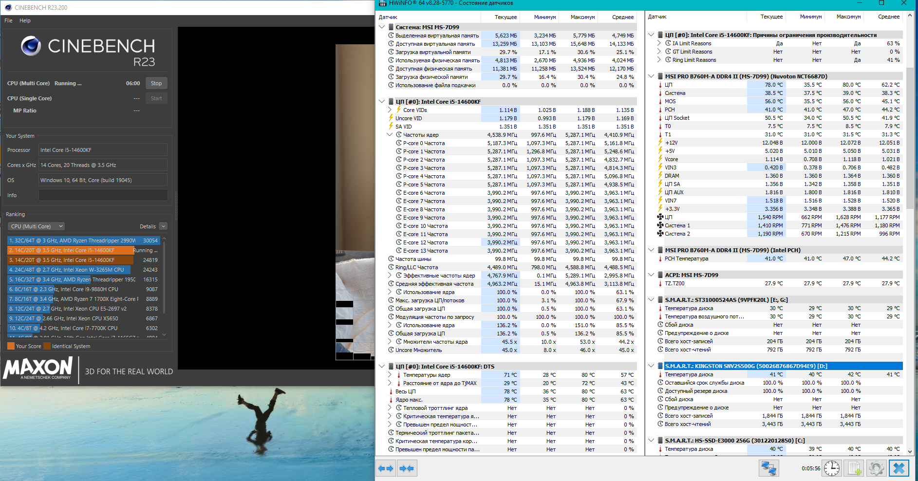 подскажите проц 14600kf, плата msi mag b760 mortar wifi II биос самый последний лимиты 200Вт, напруга в автомате в нагрузке 1,4в проблема: снижаются частоты при достижении лимита до 4.7Мгц вроде как должны держать и не падать перегрева нет что еще в биосе накрутить?
