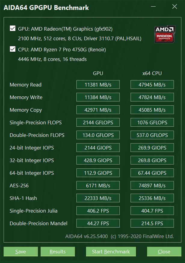Добавлено спустя 7 минут 42 секунды: _DMU_ тест gpgpu, версия AIDA 64, самая свежая...а то другая даже про камень то такой не знала , результаты конечно странные