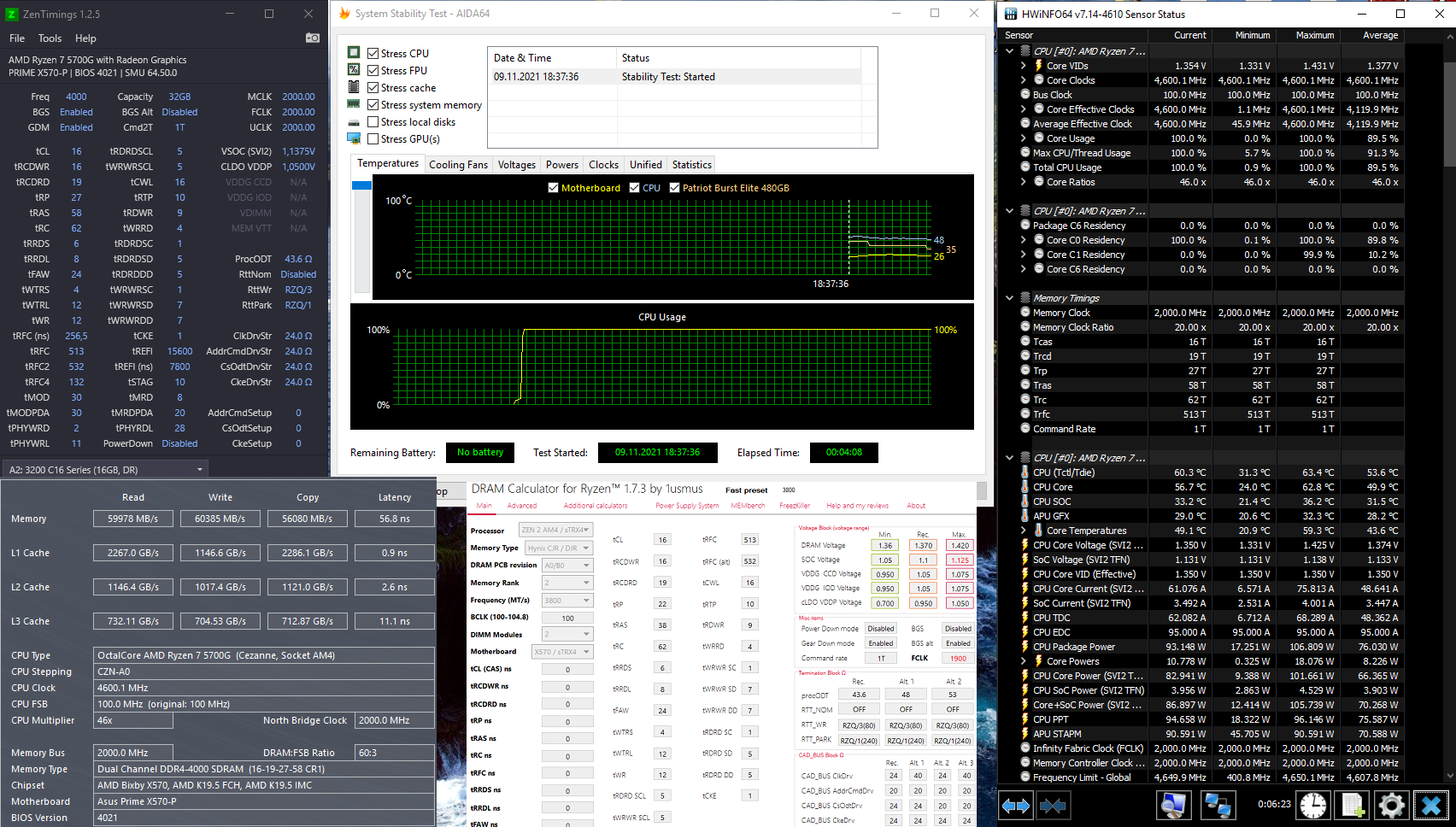 Тож уже месяц назад купил сюзанну 5700G. Поразгонял проц, погонял оперативу, конечно очень жаль что по л3 кэшу она проигрывает остальным, но видео ядро было нужно. CPU - 1.4375 v. SOC - 1.1375 v. DRAM - 1.425 v. CLDO VDDP - 1.05 v.