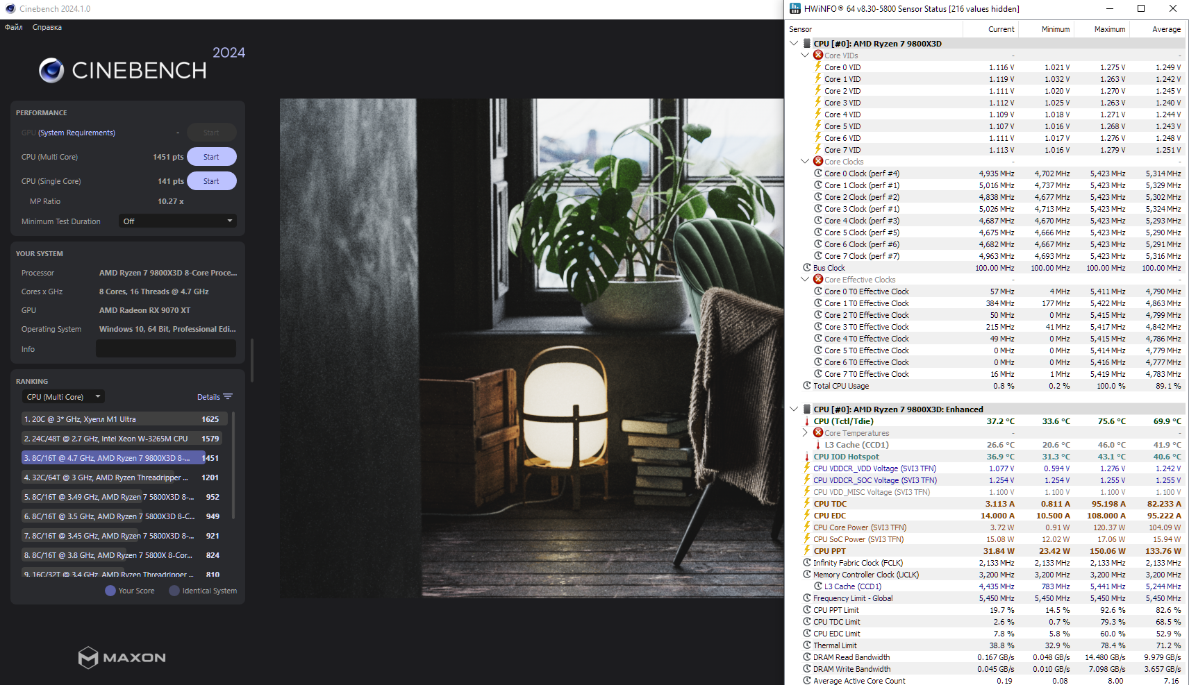 В общем снова потихоньку скатываемся с железобетонно стабильной курвы -35 к средним значениям. Как я уже писал, на моем экземпляре есть принципиальная разница между курвой -20 и -30, а именно будут ли в бенчах температуры выше или ниже границы перегрева в 85С. Сам лимит можно и выше поставить, но это не дает реального прироста производительности. Вероятно у меня промежуточные значения выше -25 также стабильны, но они не дают такой принципиальной разницы и нет смысла возиться с их настройкой и отлавливанием ошибок. Тем более, что способность какого-то отдельного ядра работать с более низкой курвой под частной нагрузкой не равно стабильной работе всех ядер одновременно. Вот и получилось, что в моем случае практичнее использовать стабильные -20, поскольку вне бенчей 85С+ уже не увидеть, а проблем вроде рандомного падения системы еще нет. Наверное тоже стоит "урезать осетра" и признать очевидное - качество х3д более-менее одинаковое, а ожидаемые рабочие значения уже давно получены эмпирическим путем. Если останутся стабильные -25, то уже будет очень хорошо.