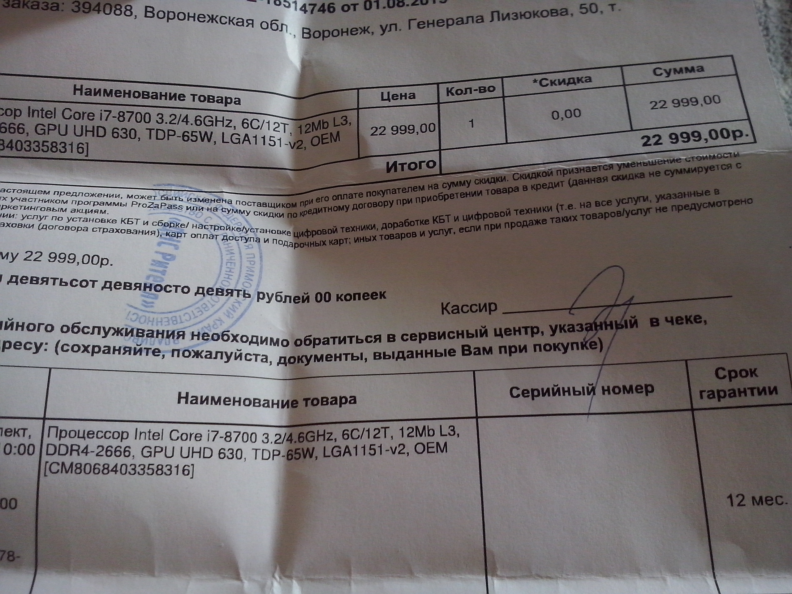 мыслишь стереотипно , поскольку как для 8700, так и для 9600к нужна нормальная память , даже для 8700 это более критично в отсутствие разгона . сейчас цены на память сильно снизились и весьма популярные crucial ballistix стоят практически как самые дешёвые зелёные планки от того же Самсунг, а материнскую плату под 9600k можно взять одну из самых дешёвых на z390 чипсете и никаких проблем не будет при разгоне . Почему ты не привел реальную цену ? В ДНСе 8700 стоит 25к-25.5к : https://www.dns-shop.ru/product/e3915e0 ... 0-box/?i=1 Разница в цене между процессорами составляет 50% , поэтому в игровом компьютере нет места для i7 8700. К примеру я за цену 8700 взял целый комплект cpu+ram+mb: https://drive.google.com/file/d/1-bvuTP ... p=drivesdk В общем, твои советы , что не надо брать "неполноценный" 9600K, когда можно взять за ту же цену платформу на базе 8700 можешь оставить при себе, потому что они не соответствуют действительности.