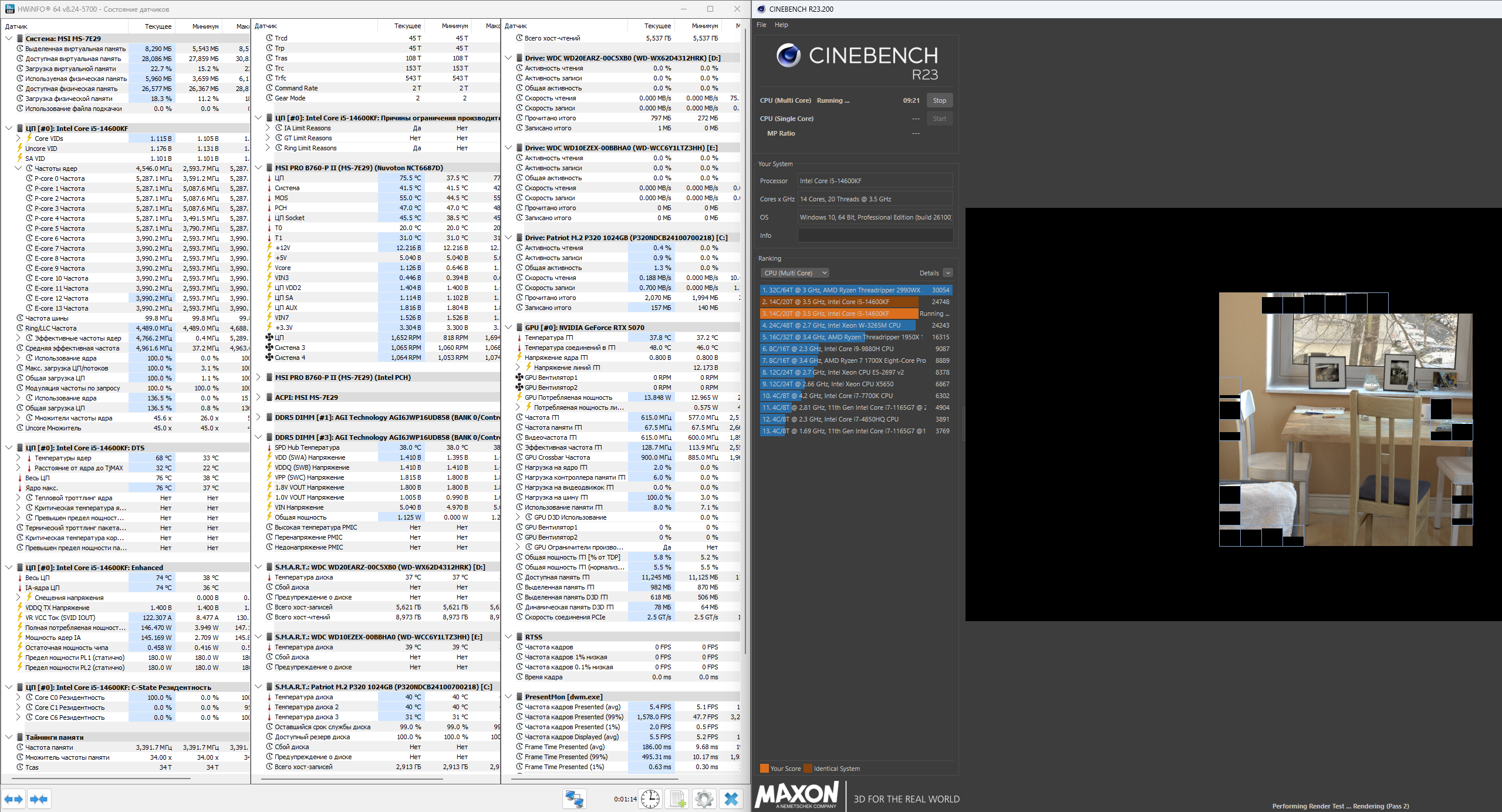 А выставлять приоритет реального времени необязательно, достаточно хотя бы "Выше среднего" поставить. Насчет обновления показателей мониторинга - Синебенч этим давно страдает, поэтому тот же HWInfo на время теста как раз лучше убрать из переднего плана, обратиться к нему лишь после завершения тестов.
