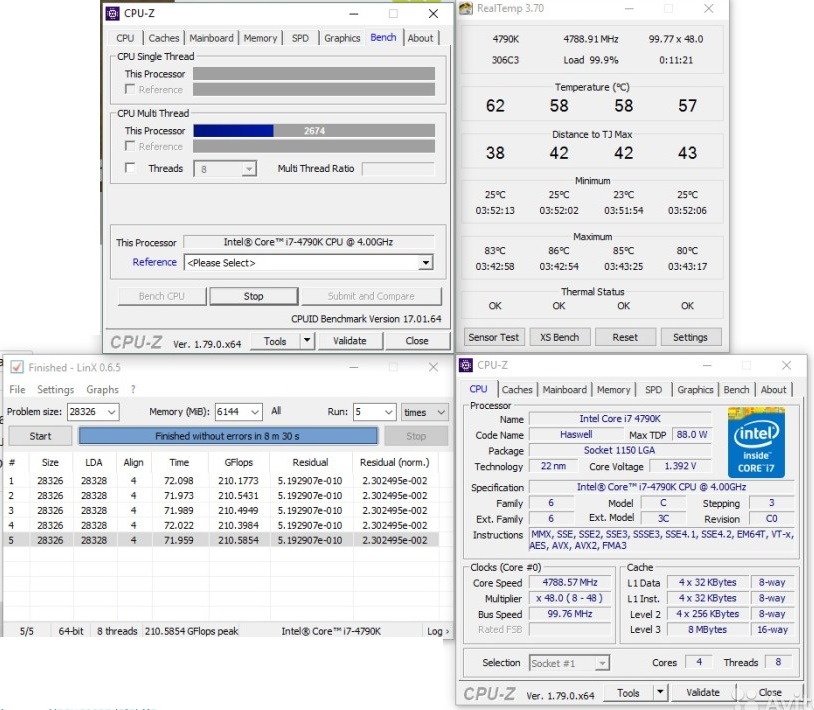 Здравствуйте ! Имеется проц 4790К работает 4.7 на 1.37-38 под нагрузкой по cpuz. Скальп, под крышкой скорее всего жм (скальпировал не я). Кулер Noctua NH-D15, термопаста Thermal Grizzly Kryonaut. Волнуют температуры при прохождении lynx. При задаче на 4 гиг оперативной памяти доходит до 97 градусов по некоторым ядрам. При задаче на 8 гиг самое горячее ядро уходит в тротлинг. Во всех играх не более 70 градусов по самому горячему ядру. Подскажите пожалуйста это нормальные температуры с учетом указанного оборудования и напряжения или надо что-то исправлять ?