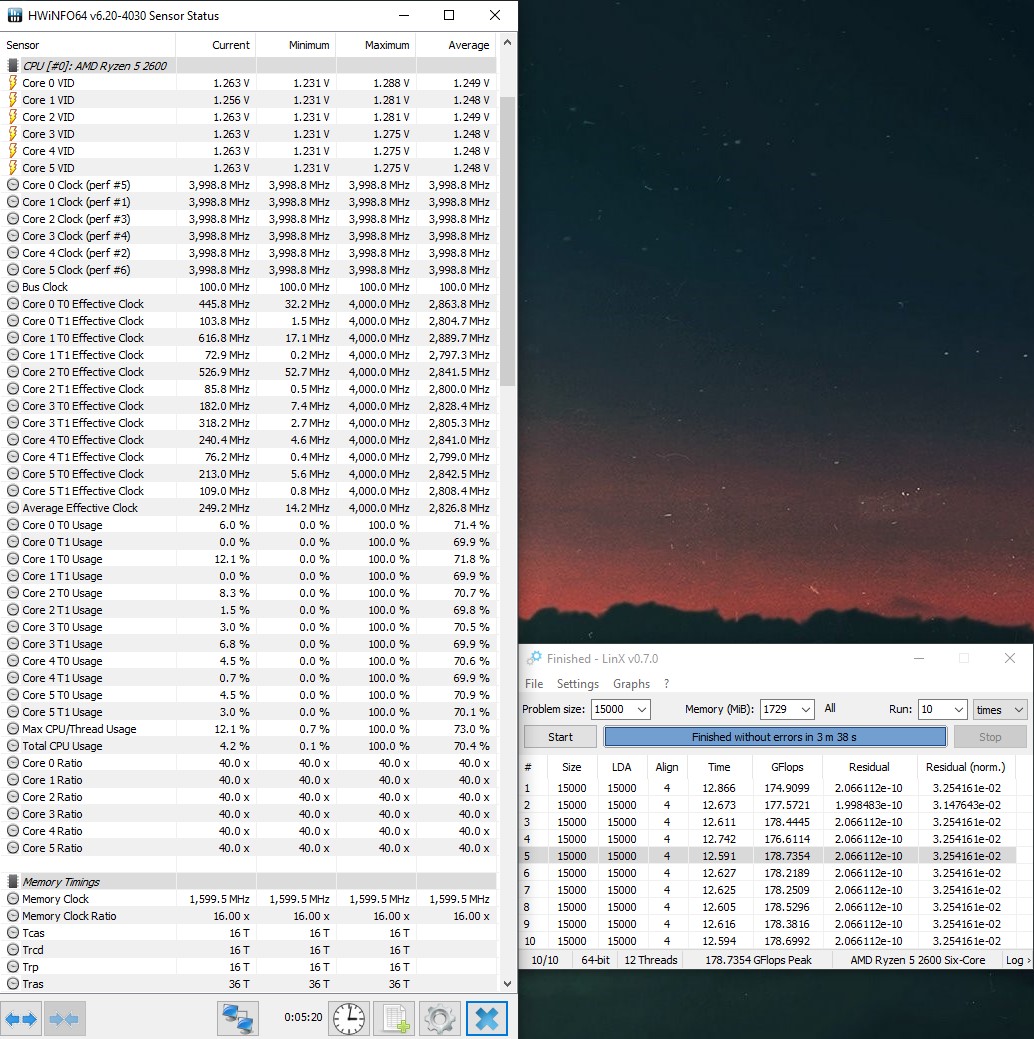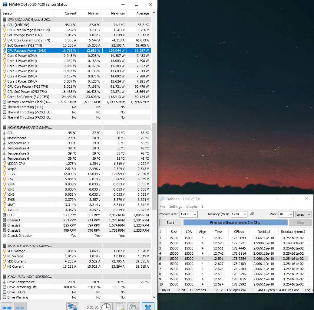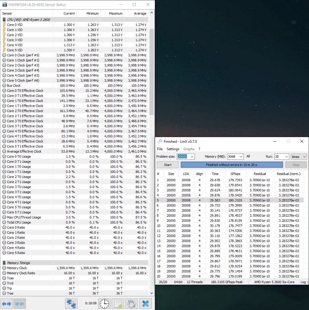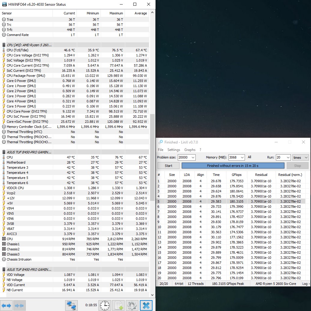 Всё ли теперь нормально, сам результат, все ли флопсы на месте для этого CPU, есть ли на что грешить в hwinfo? Посмотрите внимательней пожалуйста, кто шарит С прогоном 40000 флопсы были гораздо стабильней и выше 181-180 А то что linx так жестко просаживает напряжение под llc high это вообще норма? В играх уверен такой просадки и рядом не будет и на последок за вольтаж 1.3 мне стоит переживать? Куллер боксовый от 2700х, вроде держит не плохо, не уверен
