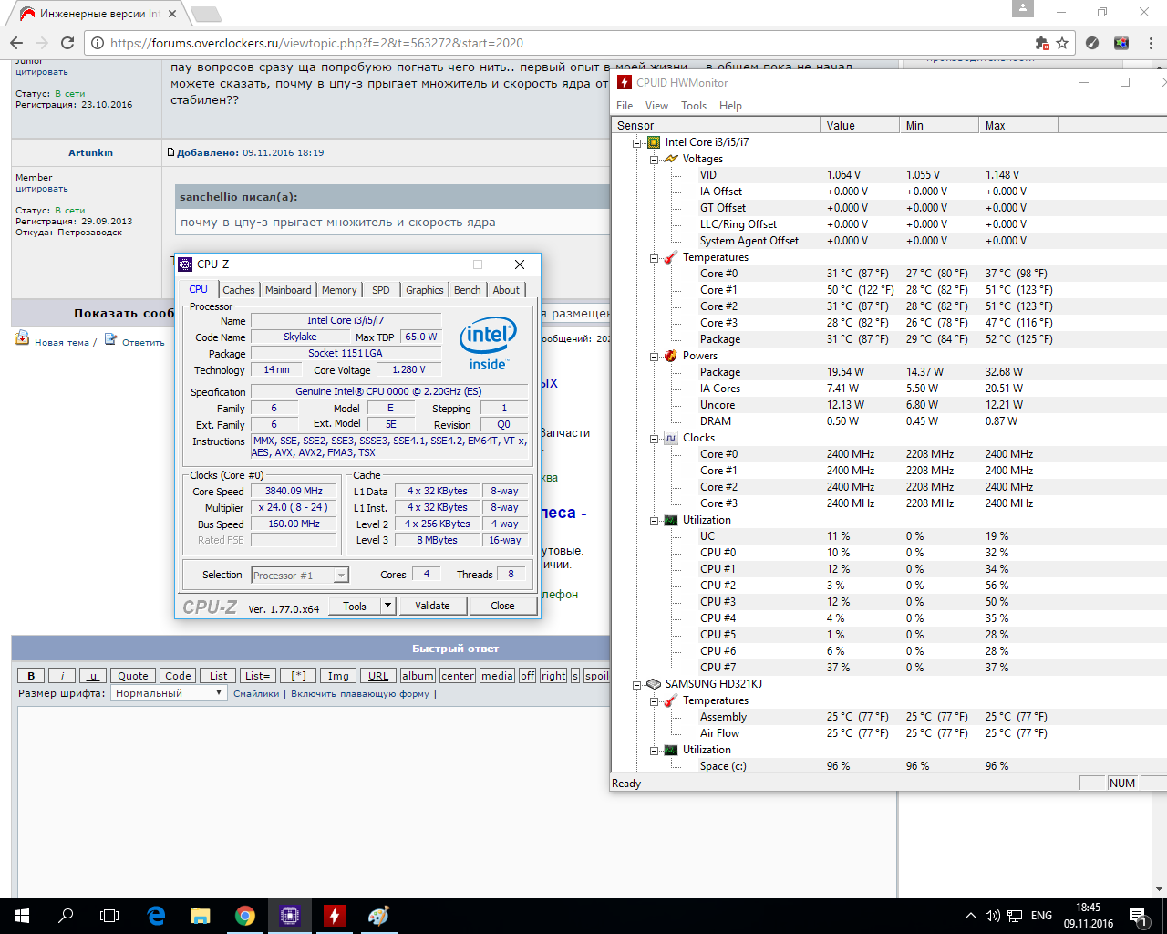 А что насчёт работы с памятью DDR3? Официально платформа Skylake работает с DDR4 и DDR3L. Но опытным путём установлено, что даже с планками DDR3 с рабочим напряжение 1.65В проблем не возникает при длительной эксплуатации. Есть наблюдения, что разгон на мат.платах с DDR3 затруднён из-за меньшего выбора множителей памяти.