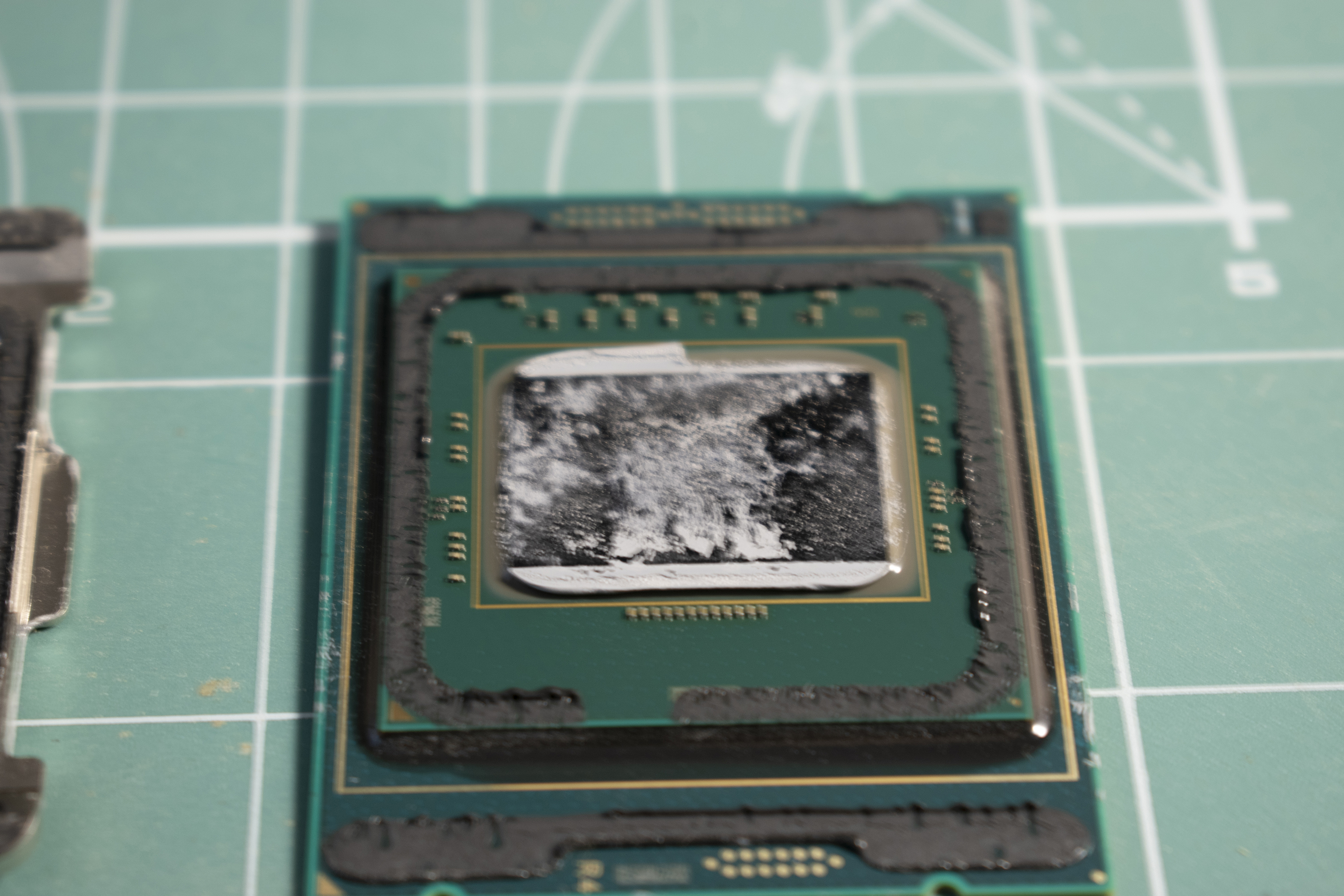 Добрый день! Прошу помочь разрешить проблему с процессором i7-8700, скальпирован год назад. Решил переставить его в другую материнку, снял огромный башенный кулер, вынул процессор, крышка еле держалась и в итоге отошла. Видимо герметик не очень хорошо сцепился, но самое печальное - погнуты два края текстолита, возможно кулер перевешивал и перегнул.