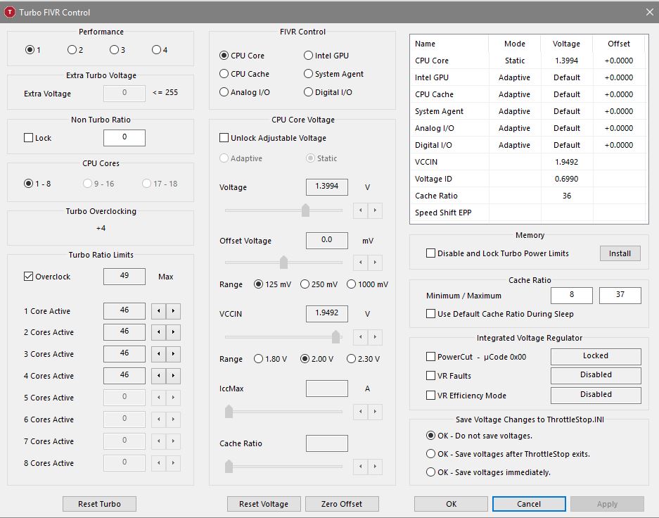 DeathBringer в общем я ничего не менял, у меня там уже там стояли более высокие значения, возможно в биосе установка максимального тока повышает максимальную мощность ( p = v * i ), всё заработало само, просто после перезагрузки масимальный множитель после одного из заходов в fivr выставился в 80. в итоге смог установить 46, когда максимальный опять выставился в 50 Да, частоты не сбрасываются.