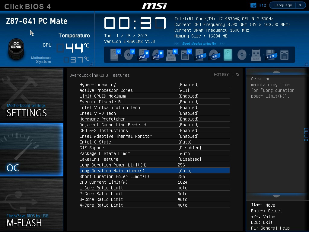 отключил Limit CPU id и выставил CPU current limit в биосе на 1000 (на скриншоте еще не измененные значения) И могу в троттлстоп постепенно увеличивать максимальный множитель, правда на частоту это не влияет, возможно потому что стоит cpu ratio mode на fixed mode и множитель на 41. Только вот может быть это можно было через биос что-то поменять? Сейчас перезагружусь