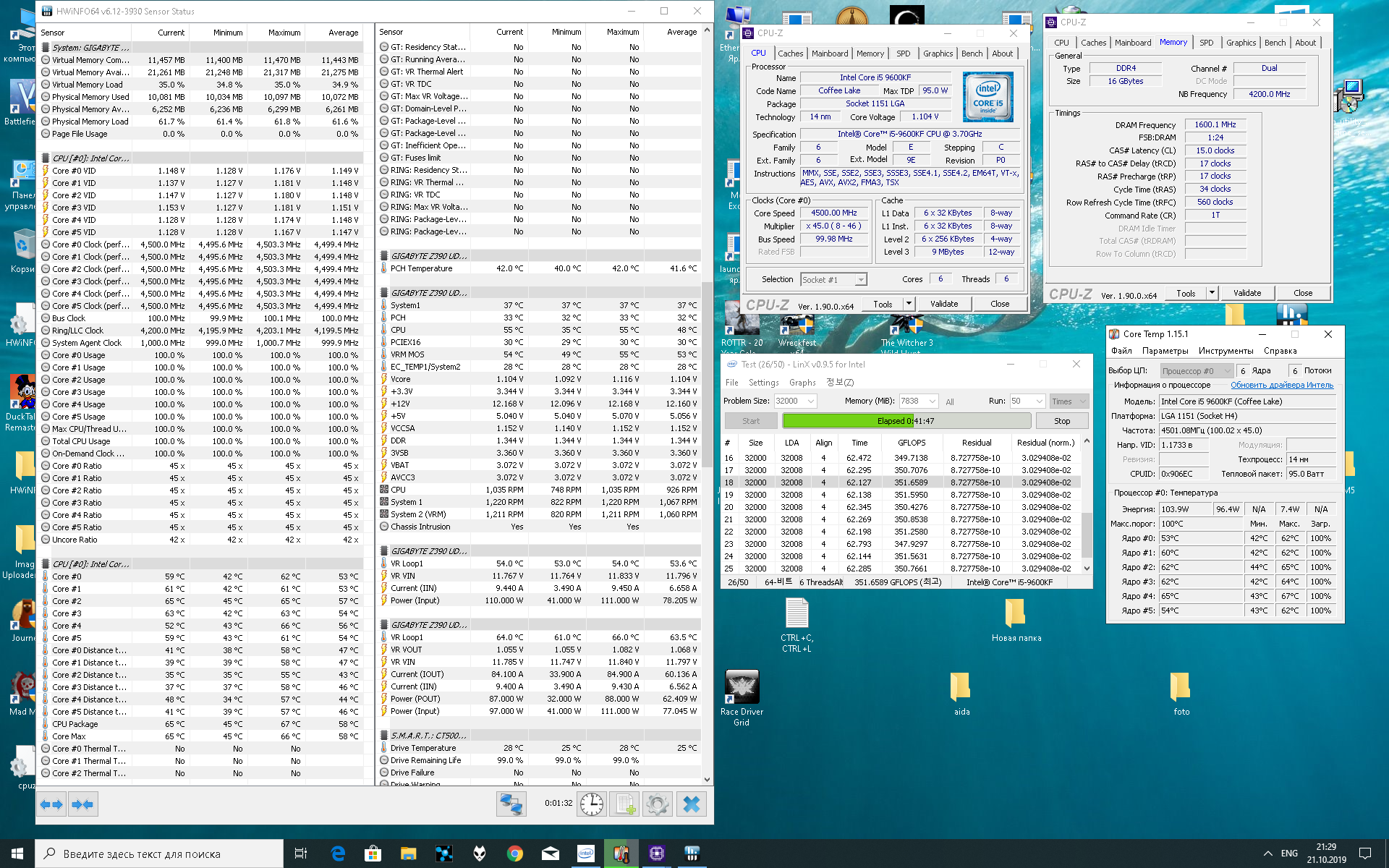 В итоге ты дошёл до того, что 9600к у тебя в линксе как мой набирает (у меня 356), который не создан для разгона зачем ты брал проц с буквой К ? есть же 9400