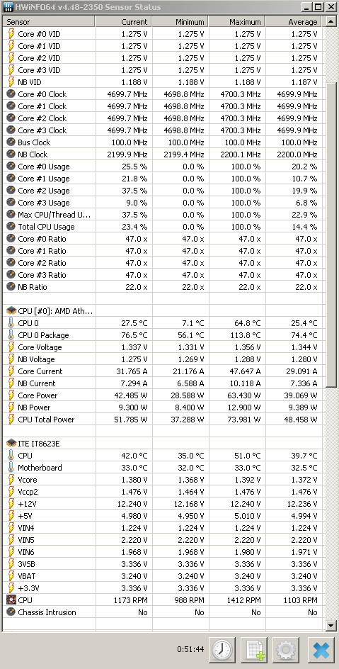 backtofuture Глюк какой то: cpu0 есть, а cpu1-3 нет. Судя по минимальному значению для cpu0 в 7.1 градус, на этот "датчик" ориентироваться не стоит. Скачай AMD Overdrive там нормально показывает, как мне показалось.