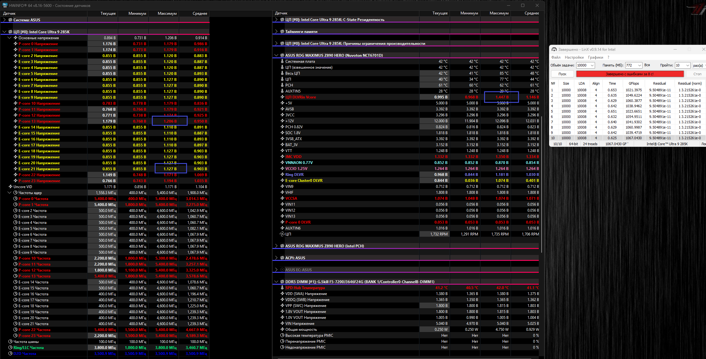 Пока да. Память только подтюнил. Никак не пойму прикола с напряжениями. Первый процессор с P/E ядрами. Хочу подкорректировать и P и E ядра через адаптивный режим. Какой минимальный предел по напряжениям у обоих ядер, хотя бы на 13900К/14900К. Просто для понимания, что бы не сидеть месяц, не настраивать? Просто по 285К пока туман.