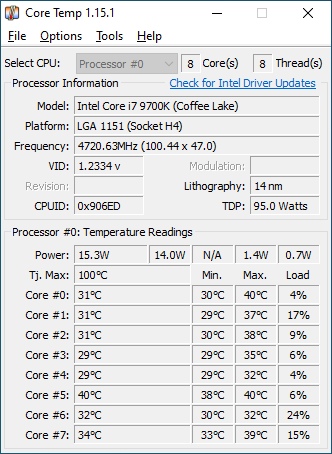 (!) А также убедительная просьба кроме скриншота, пишите свою версию ОС, версию BIOS, модель материнской платы, тип охлаждения и заданное (и/или реальное) напряжение Vcore и указываем заменён ли термоинтерфейс под крышкой процессора, и на что заменён (другую термопасту или ЖМ). Ещё желательно указать номинальный VID процессора (штатное напряжение на штатной частоте с отключенным Turbo Boost), а также Batch – серийный номер/номер партии (его можно посмотреть на крышке процессора). Результаты разгона можно присылать в ЛС куратору темы, а также постить в теме соблюдая имеющиеся ограничения на размещаемые размеры снимков. Все прошедшие проверку результаты будут добавлены в статистику разгона Coffee Lake.