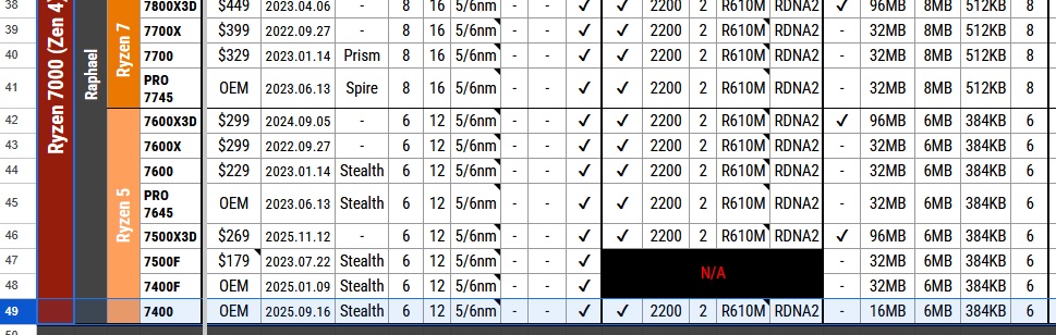А кто-нибудь вообще видел в продаже Ryzen 7400? Без буквы F, то есть со встроенным видео. Просто нужен максимально дешёвый проц со встройкой для тестирования плат АМ5.