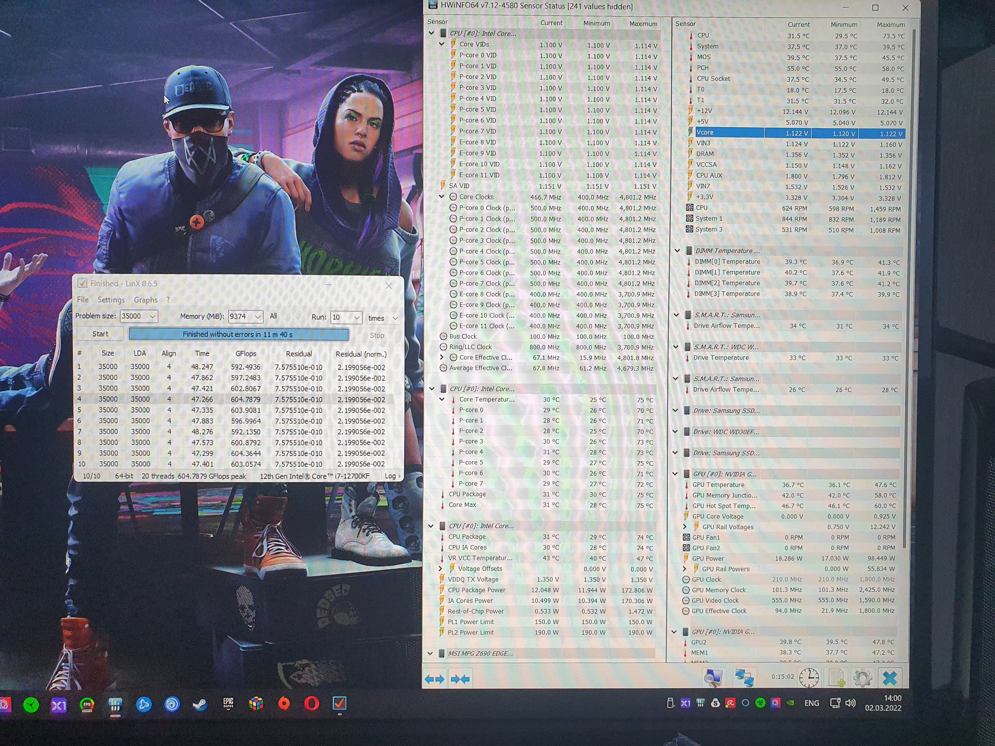 Подскажите, на 12700kf пытаюсь подобрать вольтаж под 4800 P - ядра, 3700 Е - ядра. Опустился уже до 1.110v Vcore, продолжает проходить все тесты без ошибок aida64, prime95, LinX, Cinebench. Уже тепла почти не выделяет, чего я делаю не так, разве так может быть?