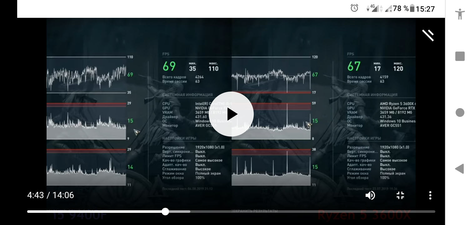 Смотря с какой памятью тестировать , если с рекомендованной у intel 2666 и 3200 у amd , то райзен будет быстрее. ну это не удивительно , ведь память быстрее , базовая тактовая частота по всем ядрам выше аж на 300mhz , что просто не могло не отразится на результатах в играх. Но все же это разные ценовые категории и разница в цене между процессорами 4к, то есть практически пол цены 9400f. Было бы более корректно сравнить с 9600kf , так как сейчас цена на CU снижена до 178 евро , что практически соответствует цене r5 3600: https://m.computeruniverse.net/ru/intel ... th-370-ghz 9600kf с нормальным комплектом памяти crucial с маркировкой aes и даже с самой дешёвой материнской платой на z390 чипсете в разгоне творит чудеса в играх , на уровне старших процессоров 9700k-9900k. А на равной частоте памяти 9400 смотрится не плохо :