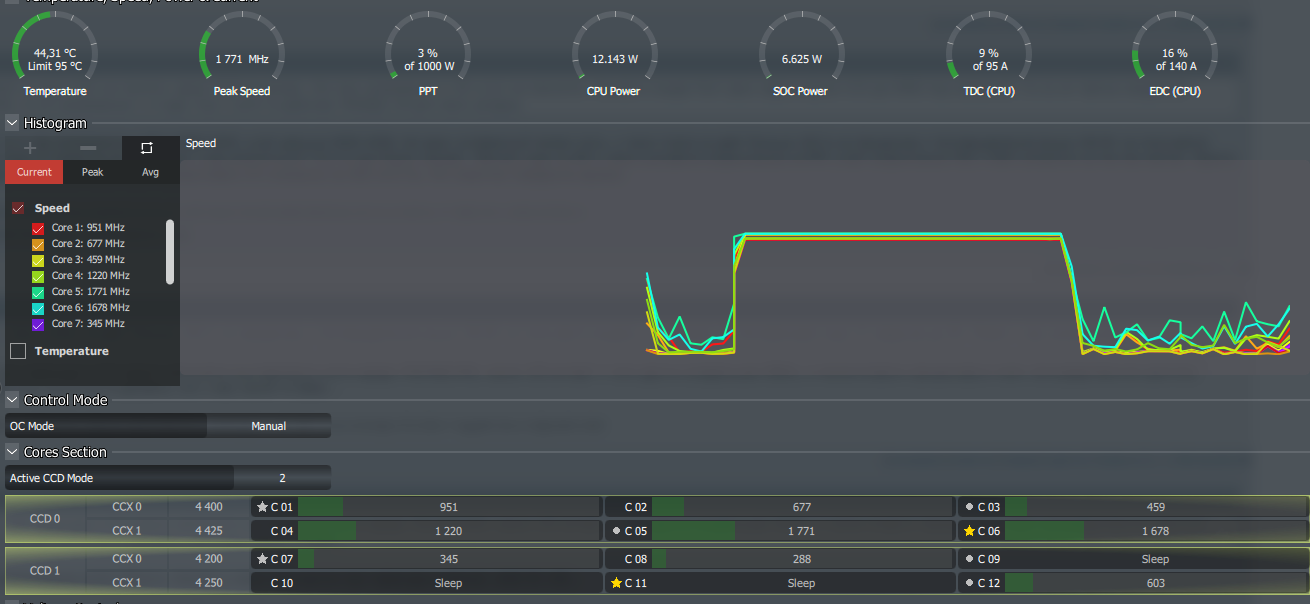 Я вчера проделал рекомендации от 1usmus и честно говоря немного выпал в осадок, я получил то, о чем он писал, стабильность использования ядер , остальные ядра "припаркованы", но, производительность "просела". В вартандер рухнула прям конкретно, вместо 120 фпс, стало 80-90, при том, что на старом интел было 140.Ядра бустили максимум до 4200 и не выше.И упала загрузка GPU c 99%, т.е. явно ядро не вытягивало по максимуму. Я к такому оказался не готов, выбрал дэфолтовый профиль и вернул настройки обратно, производительность вернулась. В общем смешанные чувства.
