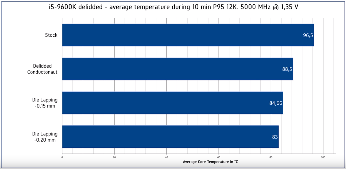 В видео от Der8auer было описание, что стачивание 0.05-0.1мм с кристалла даёт дополнительный выигрыш ~5C.