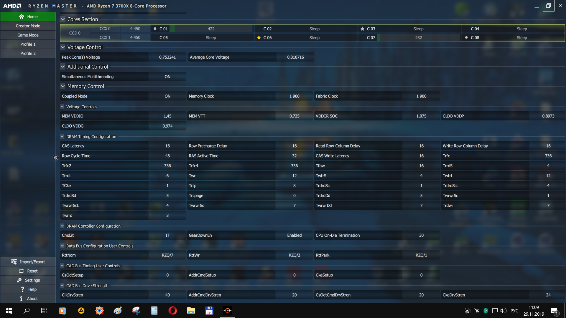 Забыл.. Во время эксперементов с LLC я запускал по мимо прочего RMaster и мониторил его "спидометры". И заметил, что если не превышается порог 95%(на всех тахометрах) то есть рост частот и произ-ти. И скаляр так же подбирать пришлось, а не просто выкрутить его на х10, что бы частота прибавлялась. Похоже с зен2 все в меру надо и подбирать досконально настройки.
