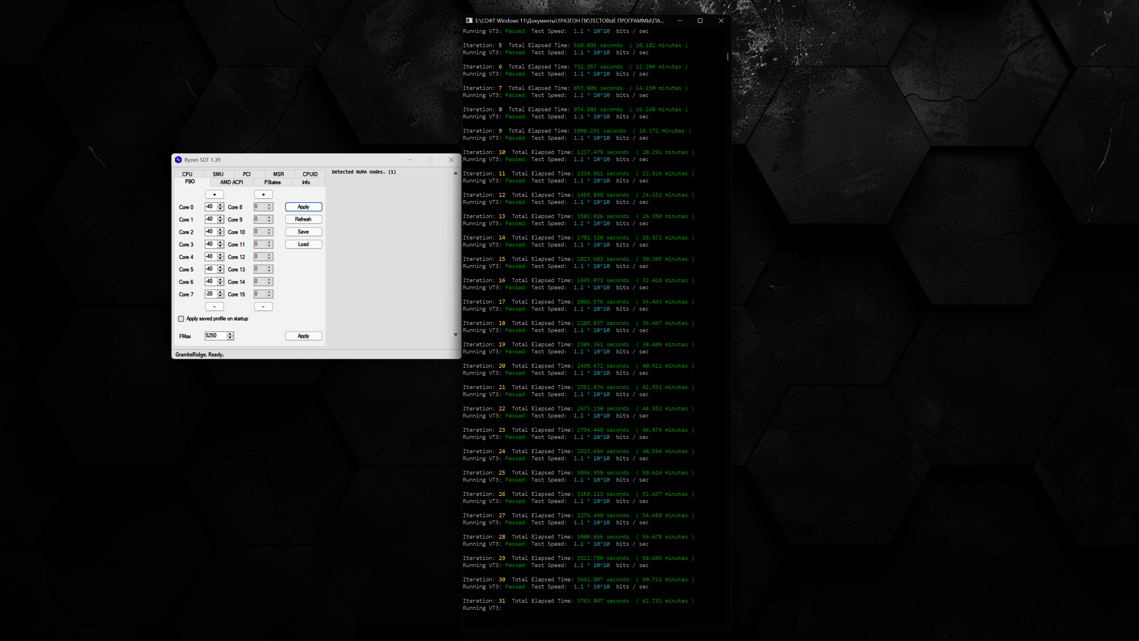 А смысл в данных манипуляциях? Я же понижаю производительность. И если в кранчере вырастут цифры, то это же как раз и скажет о том, что производительность упала а не выросла. Если что прогнал синебенч на -30 и -40, разница в пределе погрешности. Тесты Аиды так же не изменились. Ну скорость теста и производительность это как бы разные вещи. Я зашёл на OCN и увидел у пары людей, в кранчере цифры к примеру на 9700X-1.12, на 9950X3D-1.67. Получается gupsterg и Veii тоже чего то неправильно тестят?