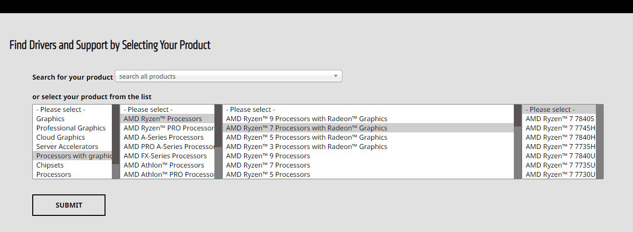 Добавлено спустя 5 минут 30 секунд: И в выборе дров старых апушек 5хххg нет уже, все перебрал https://www.amd.com/en/support Проверьте кто-нить, может браузер не тот