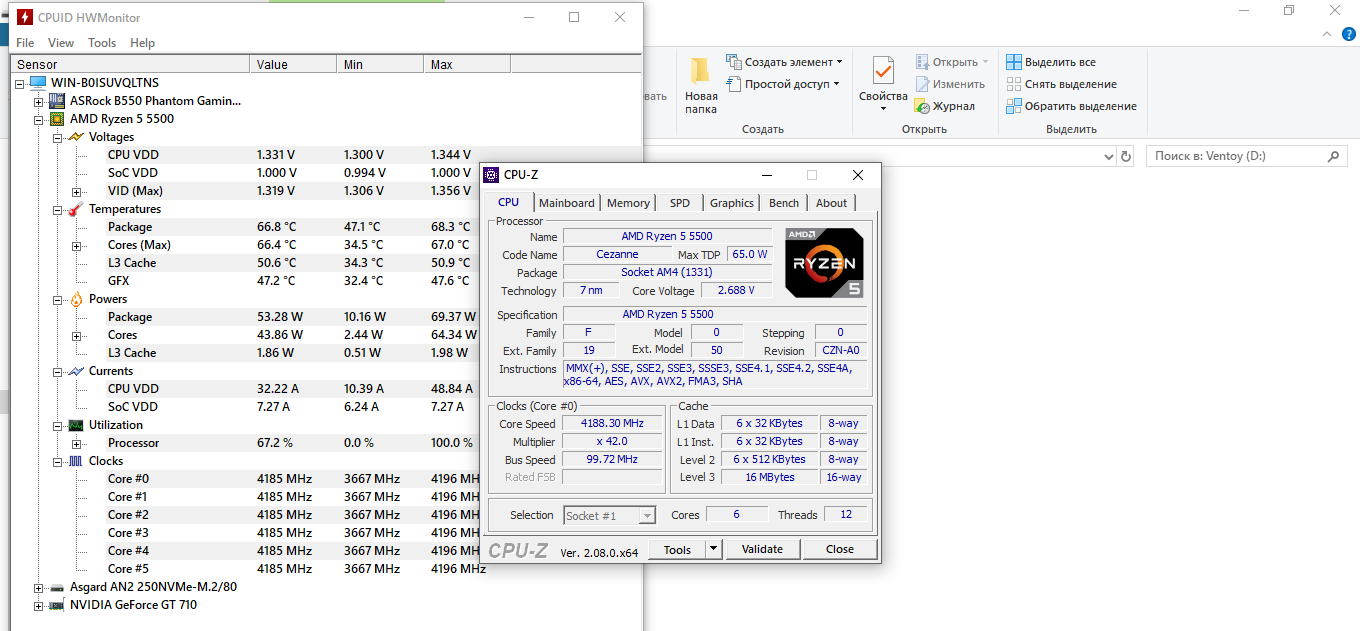 Доброго дня, камрады. Собрал тут комп для офисной работы, есть вопросы по работе Rysen 5700G. Сборка такая: mb ASUS B550m PLUS WIFI II; проц Rysen 5700G; кулер CPU Top-Flow Thermalright SI-100 BLACK; RAM 32 ГБ G.Skill RIPJAWS V [F4-3600C16D-32GVKC]; БП Deepcool PQ650M ATX 650W Gold; SSD Samsung 980 1Tb; корпус кубик Chieftec CUBE CI-02B-OP; вентилятор вдув PHANTEKS M25 Black 140mm PH-F140M25_PWM_BBK01 вентилятор выдув Cooler Master Mobius 120 MFZ-M2NN-21NPK-R1 WIN 10 Pro