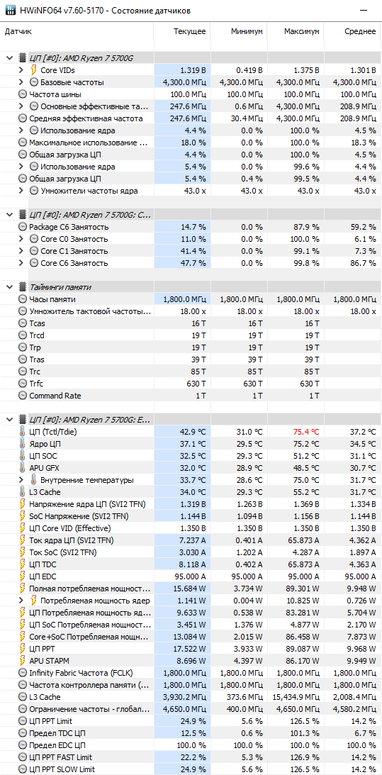 Стоит начать немного работать, открыть пяток программ и десяток вкладок браузера, t проца поднимается до 50С. Хотя остывает быстро. Так должно быть? Вроде пытался придушить проц, с чего ему греться? Этак летом при 30С в комнате там под 60С будет. Особенности 5700G? Или может кулер CPU температуру плохо отводит? Потыкал пирометром, благо кулер чёрный, температура площадки 27-30C, когда HWiNFO даёт показания 40C. Рядом стоит комп I5-12600K с Dark Rock 4 Pro, на точно таких же задачах температура проца 26-27С, кулер работает на 400 rpm.