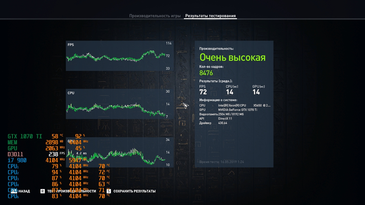 Показательный только реальный геймплей по центральной улице в Александрии . Там как раз много NPC которые ставят на колени многие процессоры . Сними видео с сравнением и графиком времени кадров и увидишь как i3 8350k и i7 980 начнут сдувается .