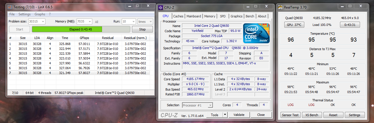 95 градусов и напруга от которой Yorkfield деградирует - это еху? или у вас скриншотные разгоны нафиг никому не нужные??