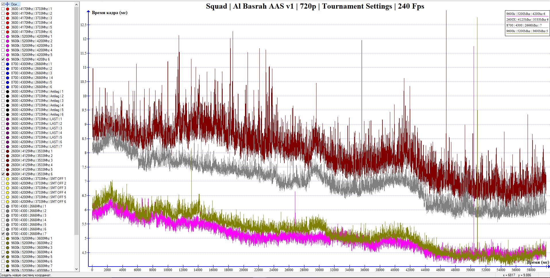 Руфусс Можете показать настоящий IPC на 12 поточном полноценном процессоре? Вот видео с методикой тестирования. После выведу график фрэймтайма, пример можно увидеть на соседнем видео.