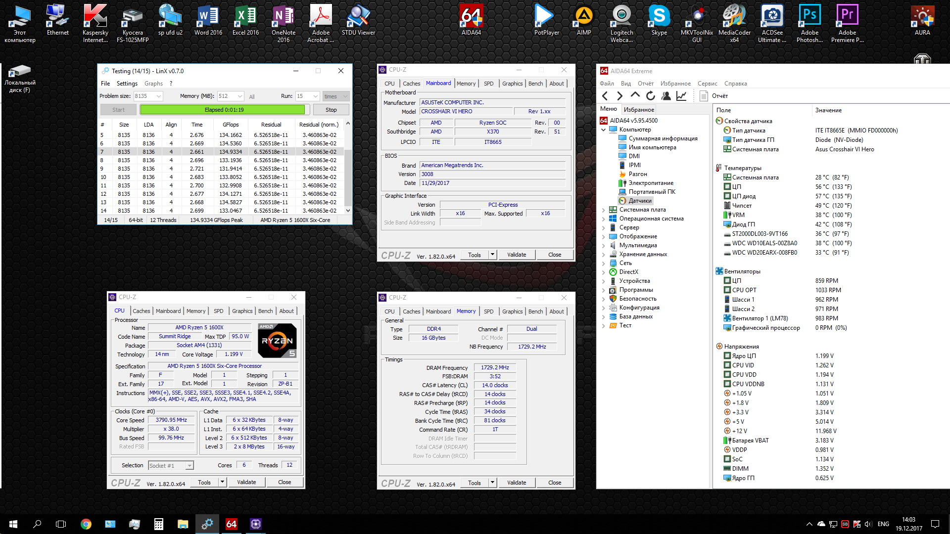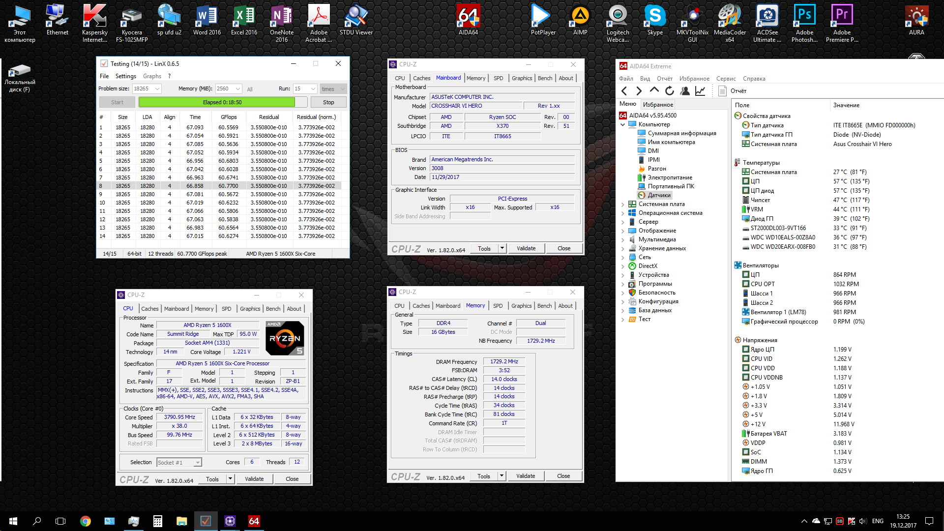 Вот скрины на частоте 3800Mhz (сейчас такой разгон стоит), в двух версия LinX. Позже выложу на других частотах. Температура в комнате была 24,5 градусов.