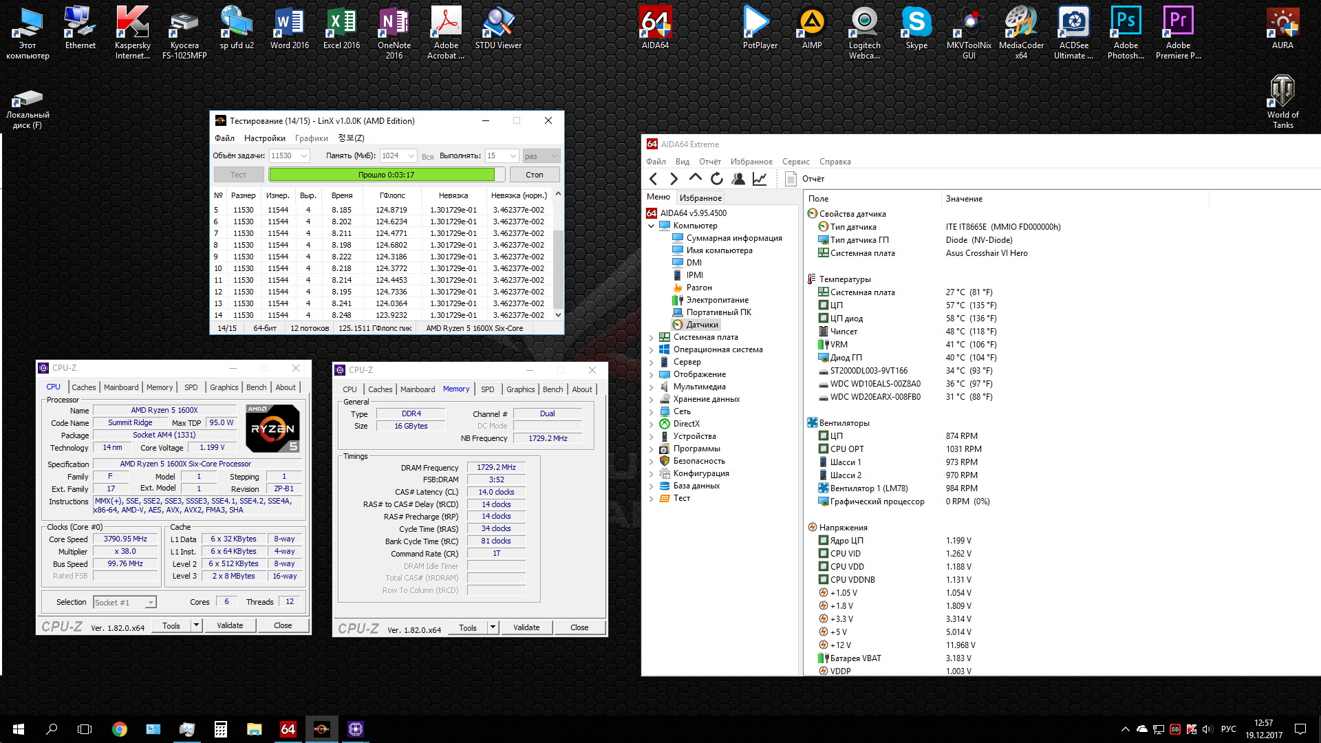 - Обычно поставляется в коробке с системой охлаждения Wraith Spire RGB (это круглая конструкция из целого куска алюминия с медной вставкой-испарительной камерой в основании и вентилятором с кольцом разноцветной подсветки, крепится к задней пластине разъёма AM4 четырьмя винтами). - Штатно имеет базовую частоту 3.0ГГц, частоту 3.2ГГц (технология Turbo Boost) при обычной многопоточной нагрузке (Blender n-cores render) и 3.75ГГц (технологии Precision Boost и XFR) при однопоточной нагрузке (Cinebench R15 single core). - Штатное напряжение питания 1.1875В. Может возрастать до 1.3В на отдельных ядрах во время работы Precision Boost и XFR. - Очень энергоэффективный, требования к СО (TDP) - всего 65W. Энергопотребление порядка 10Вт в простое и 85Вт в обычной многопоточной нагрузке (Blender n-cores render).