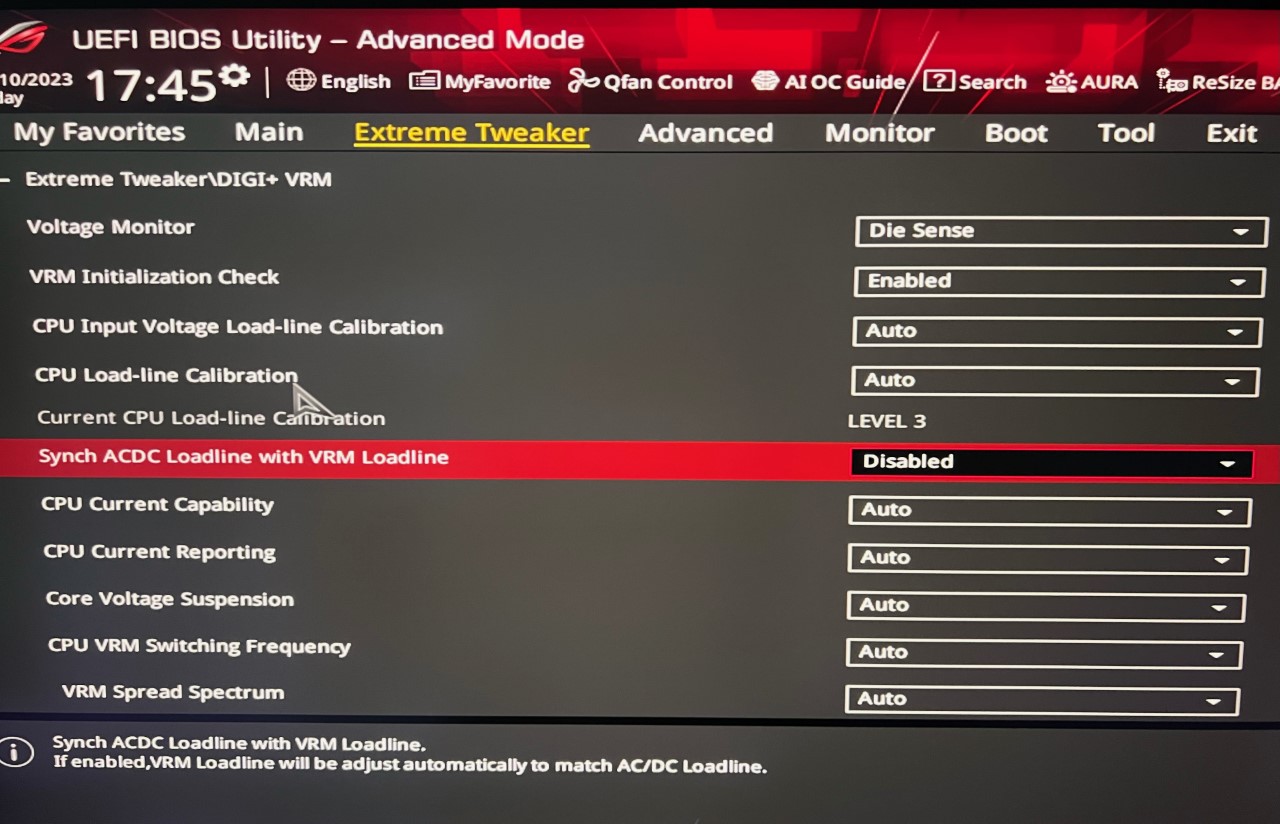 Для ASUS LLC=1>>LLC=8. А у тебя LLC=5. Читай Manual, судя по профилю-ROG Maximus Z790 Extreme.