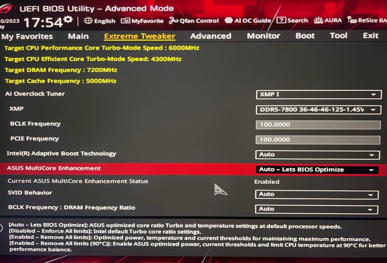 All У кого ASUS на Z790/690 - скиньте пожалуйста настройки BIOS для вашего 13700K/13900K. Или просто ссылкой на них поделитесь, если не трудно. Спасибо!