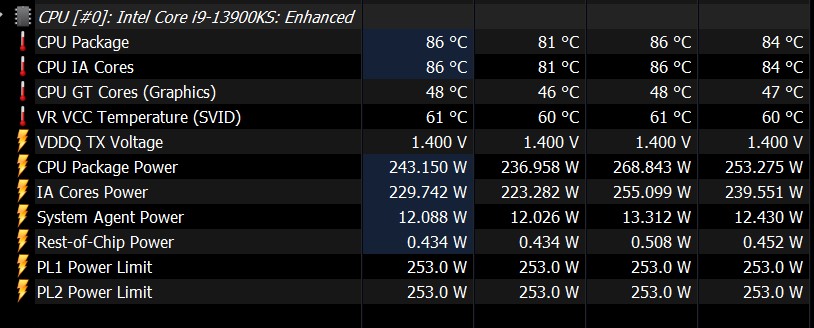Ну Интел поднял PL1 лимит у 13900KS до 320w. У 13900k этот лимит 255w. Вот я и советую снизить в биосе этот лимит, раз охлаждение не справляется. Проц будет сбрасывать частоты при достижении этого лимита. Но вообще, хотел бы я посмотреть на игры, которые больше 200W жрут с проца.