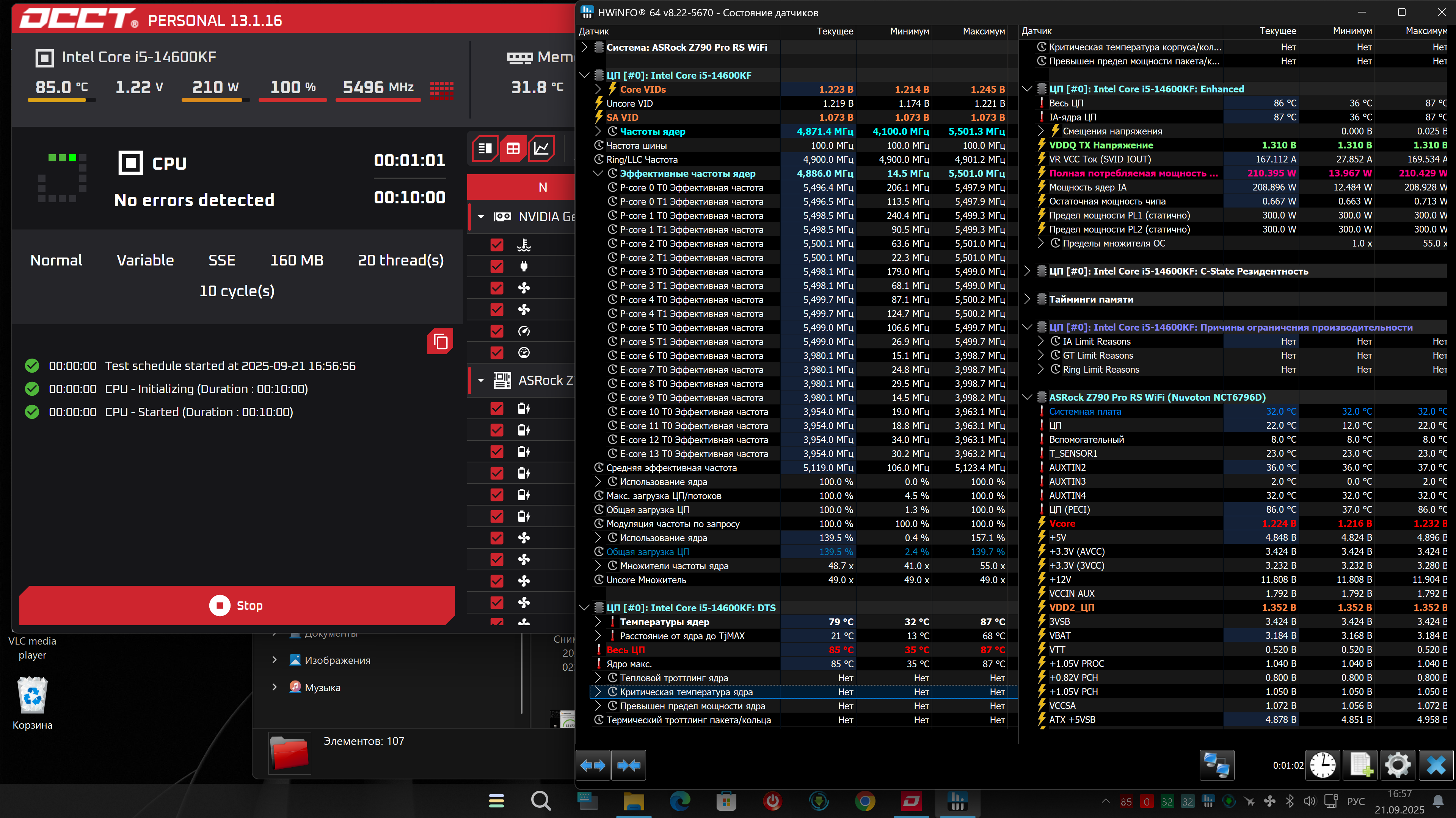 В нагрузе vcore в зависимости от теста 1.208-1.216 в среднем, потребление в R extr и R23 189-180, в Occt cpu sse 204, avx2 после 30мин 244